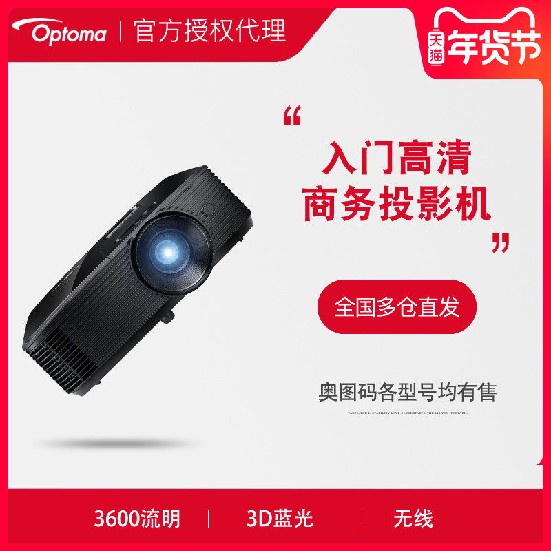 Optoma奥图码高清商务投影机WU334宽屏无线高亮3600流明办公用会议教育培训便携小型蓝光3D投影仪