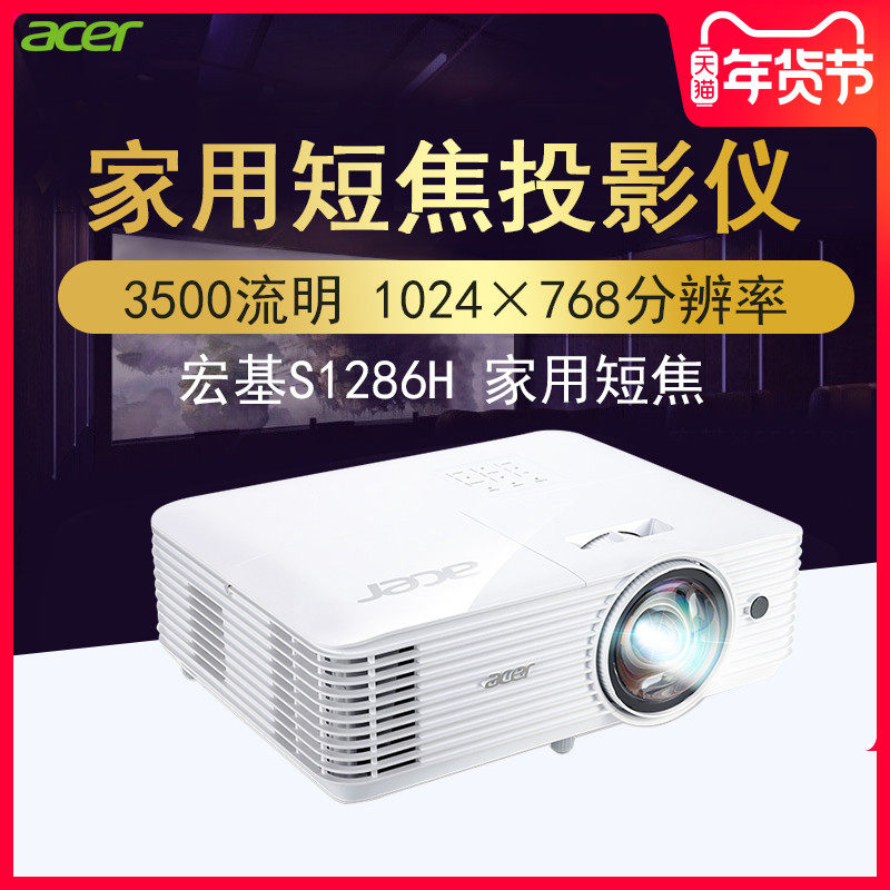 宏碁极光S1286H 办公教育短焦投影机投影仪(XGA分辨率 3500流明 蓝光3D HDMI接口 内置音箱)