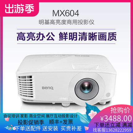 明基投影仪MX604会议培训商用商务投影机高清办公 白天直投3600流明 HDMI接口*2 赠翻页笔+高清线 明基热销机