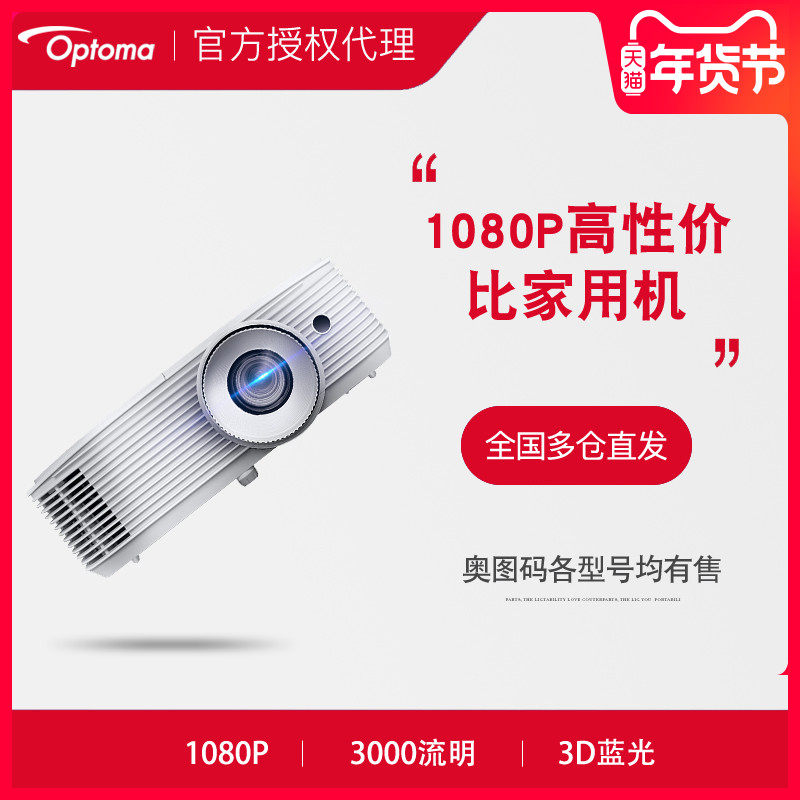 Optoma奥图码家用高清1080P投影仪HD290大屏高亮3000流明家庭影院卧室投墙无屏电视手机无线wifi蓝光3D投影机