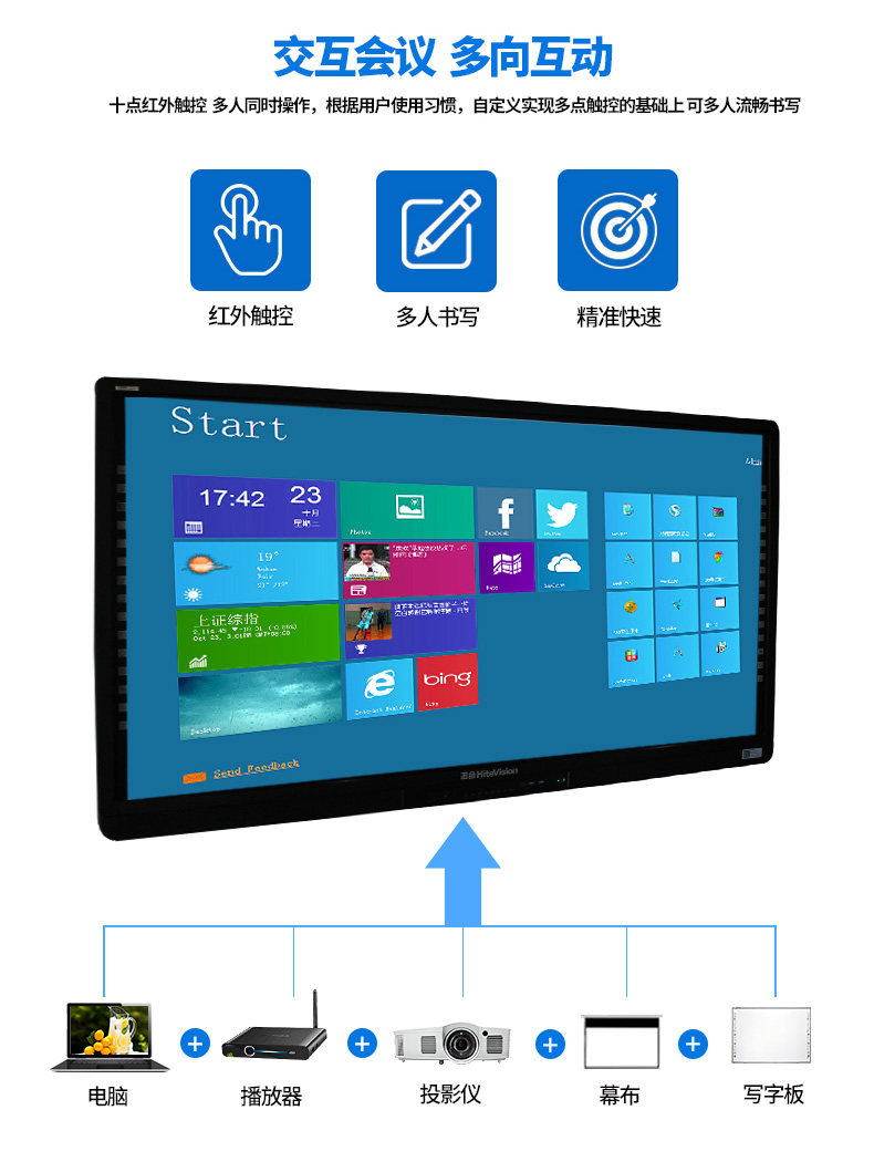鸿合75寸教学一体机触摸电视屏会议办公交互平板一体机HD-I757VE