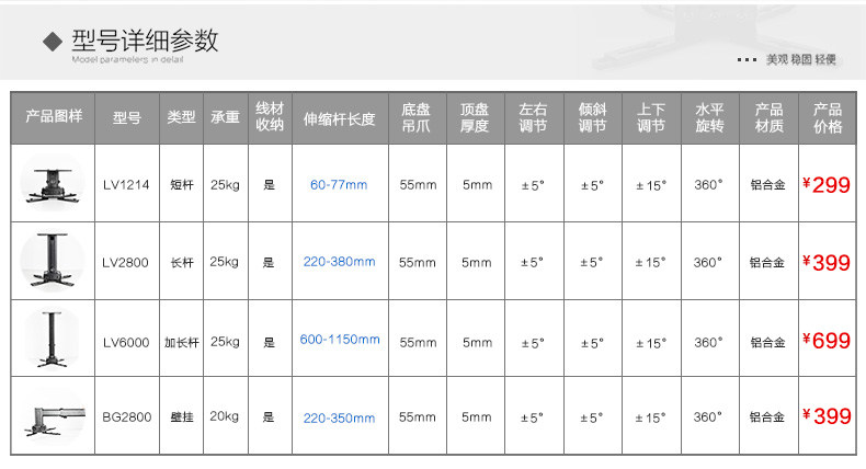 豪华投影仪吊架 优质投影机吸顶壁挂侧挂 可伸缩的全铝合金吊架