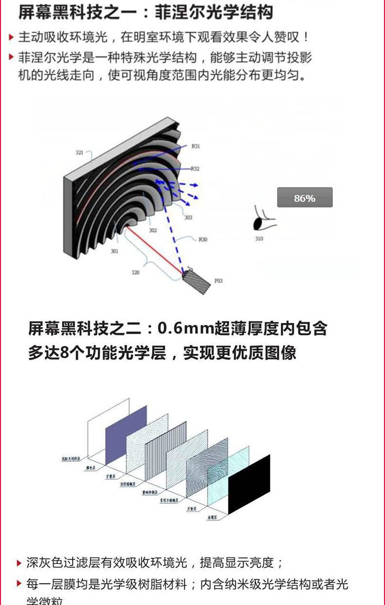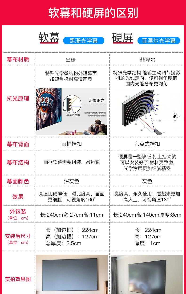 菲涅尔抗光硬屏 88英寸120英寸抗光硬屏超短焦抗光幕硬屏坚果激光电视专用极米海信长虹小米米家激光电视专用