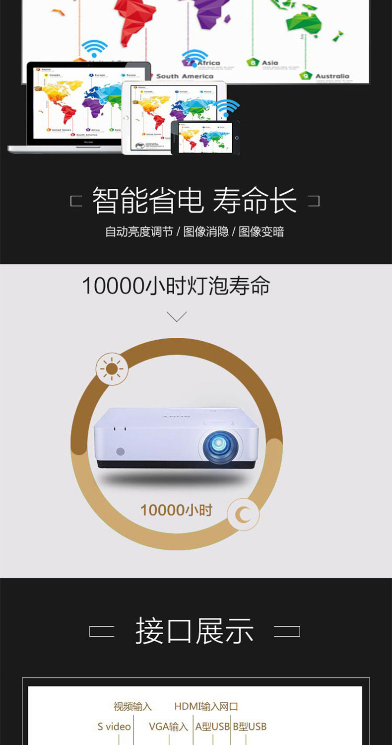索尼VPL-DX220 办公会议开会投影机便携 发新款DX221