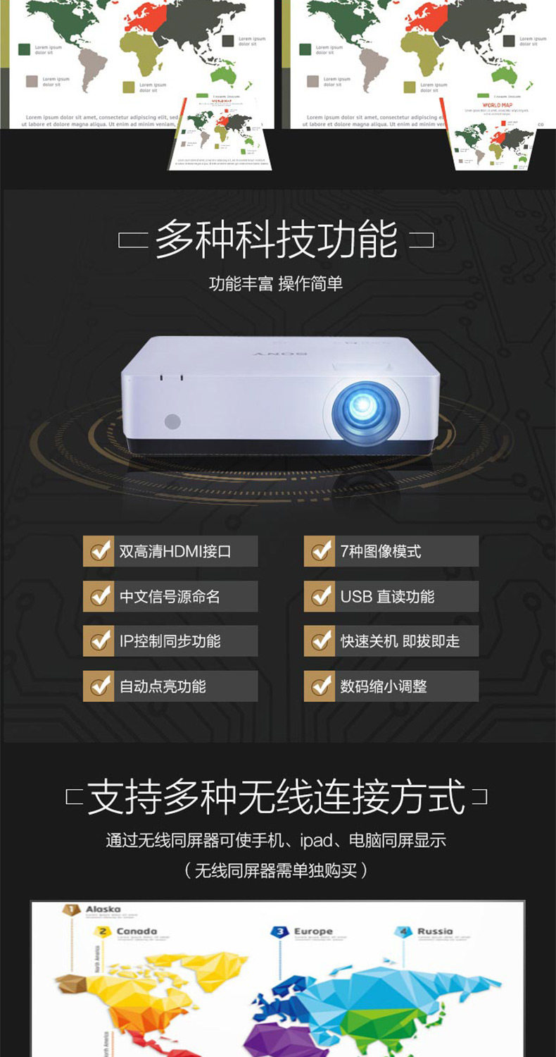 索尼VPL-EX455办公会议投影仪 培训教育商务 家用高清投影机