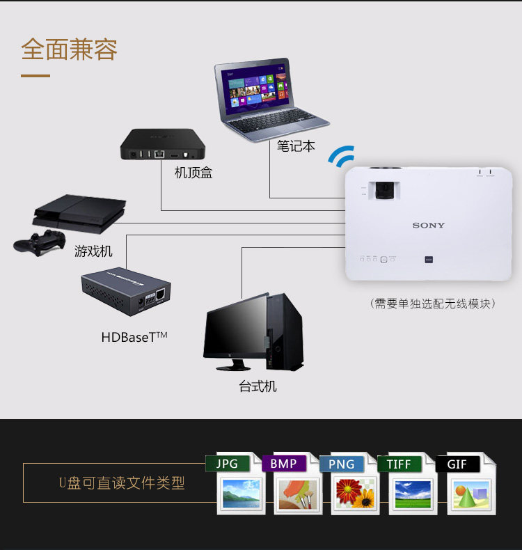 索尼 VPL-EW578 投影仪 商务 办公 会议室 4300流明宽屏
