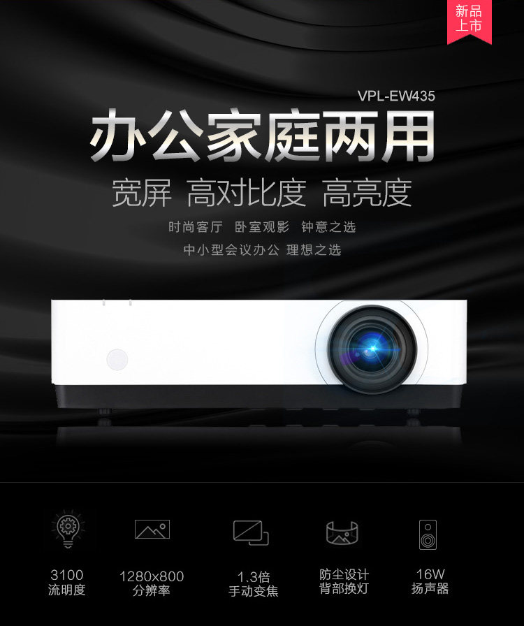 索尼VPL-EW435投影仪商务办公高清会议家用宽屏 官方标配价格可优