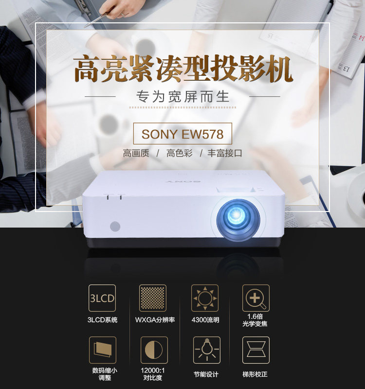 索尼 VPL-EW578 投影仪 商务 办公 会议室 4300流明宽屏