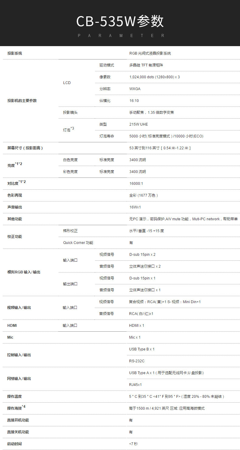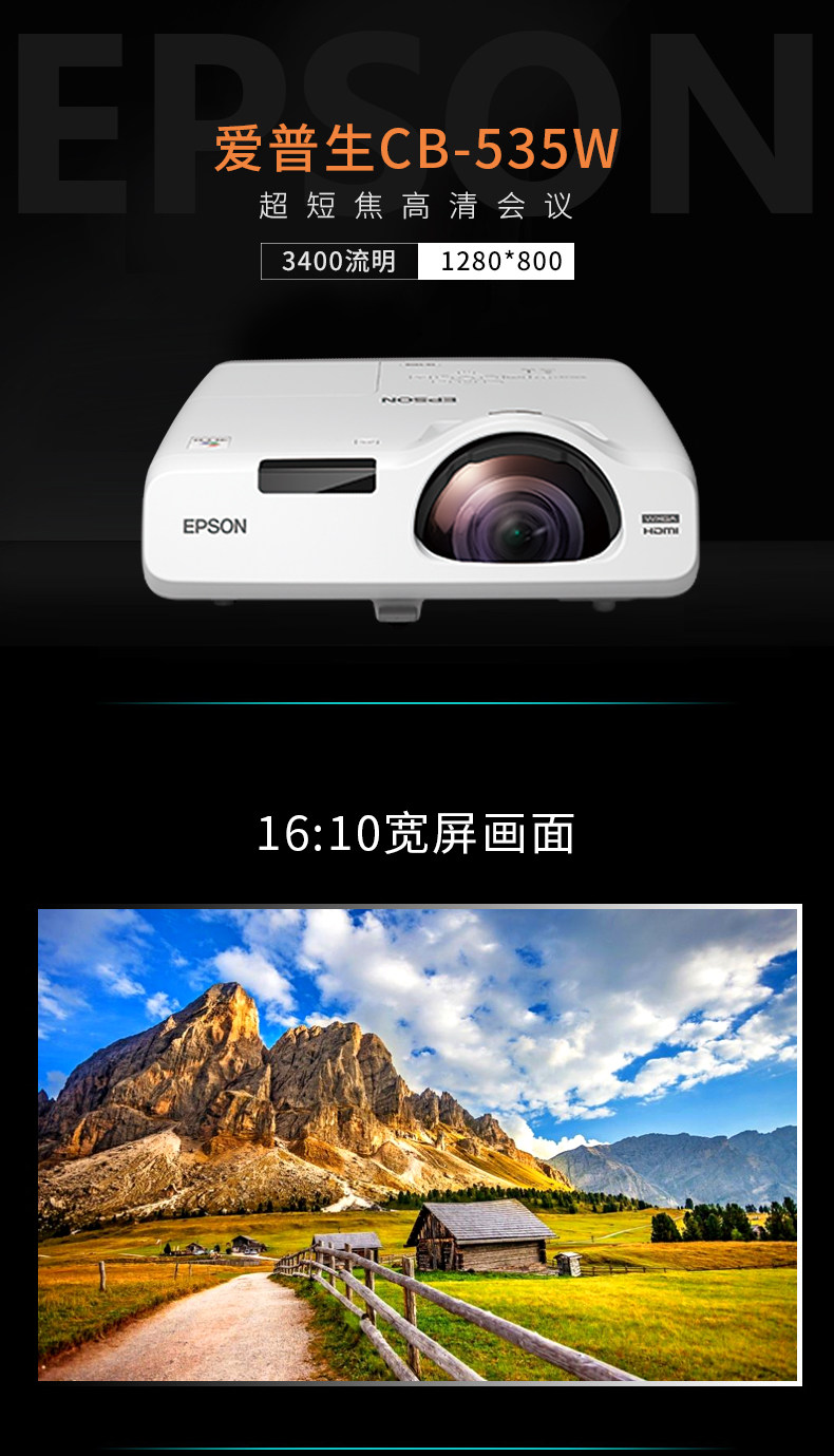爱普生超短焦投影仪CB-535W短焦宽屏高清投影仪多媒体教学培高亮 1米投100寸支持上门安装 可选配电子白板