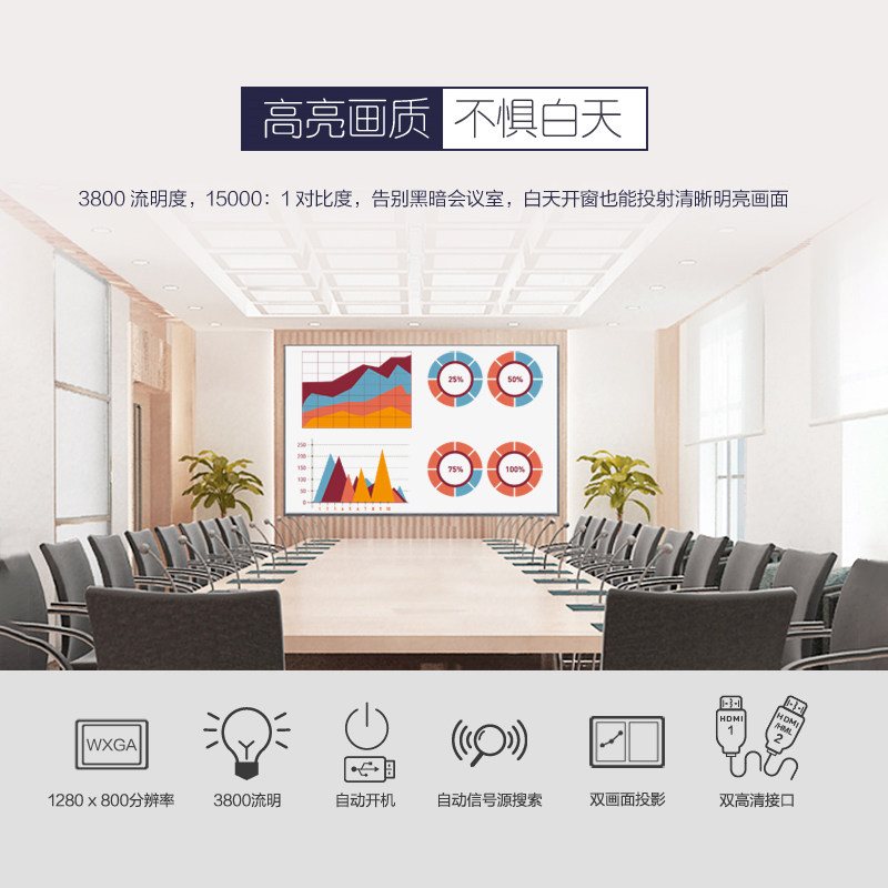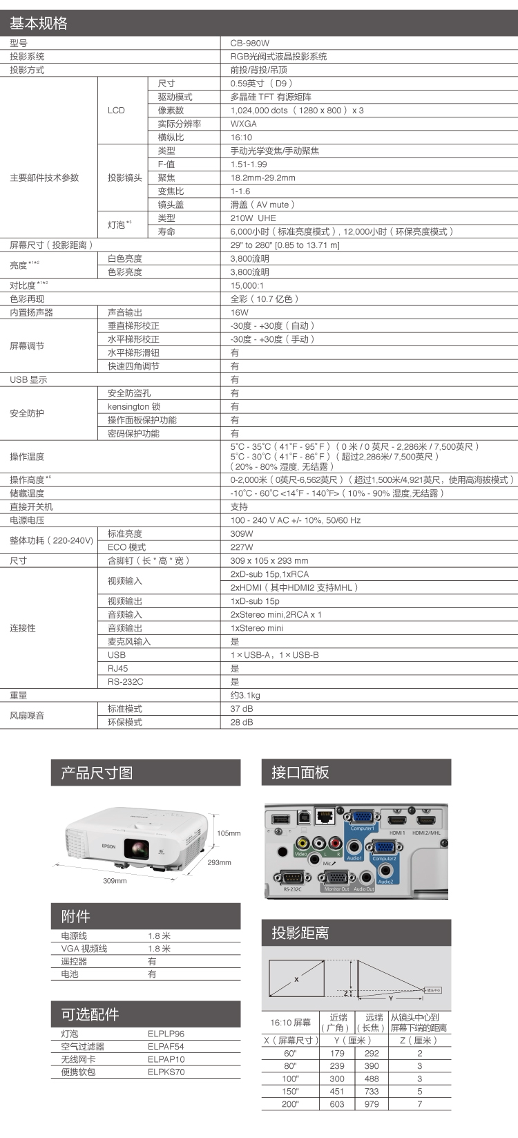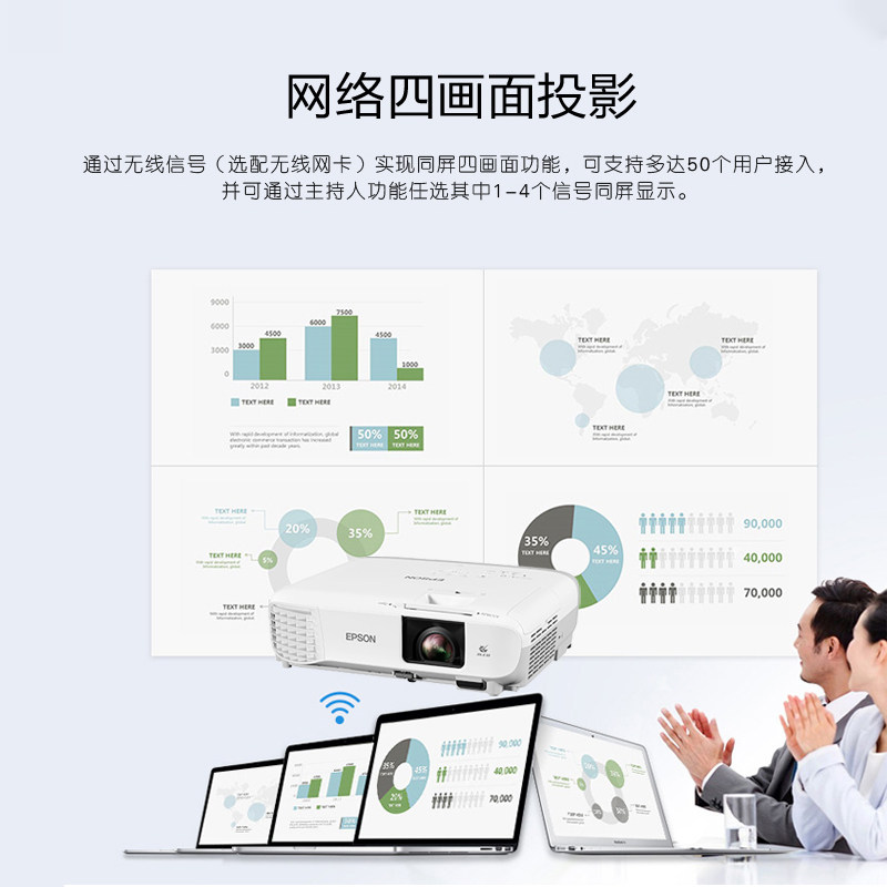 爱普生投影机CB-980W商务办公会议教学3800高亮度投影机 双HDMI接 1280*800宽屏高清无线投影 中高端酒店培训