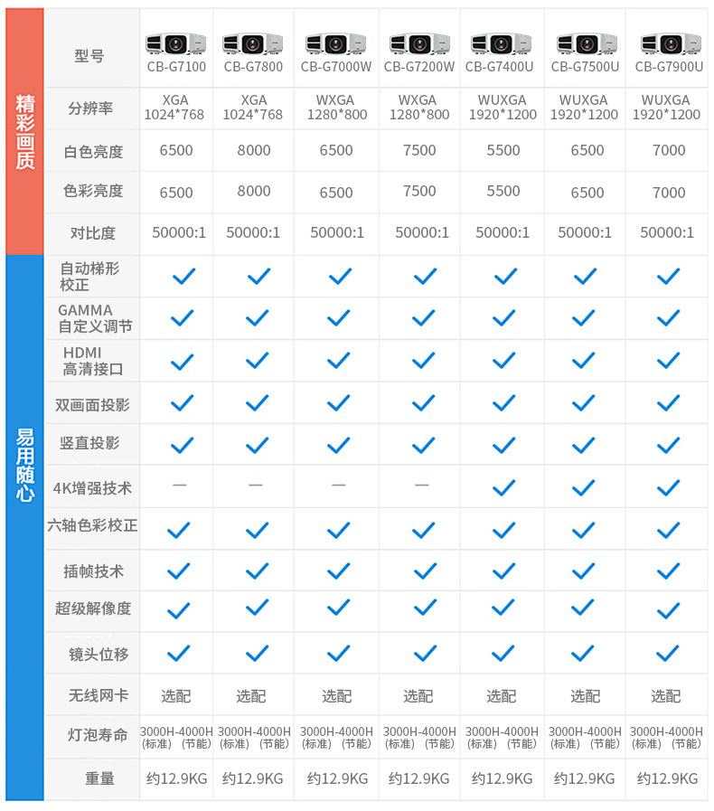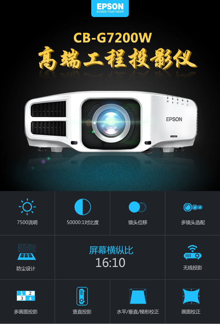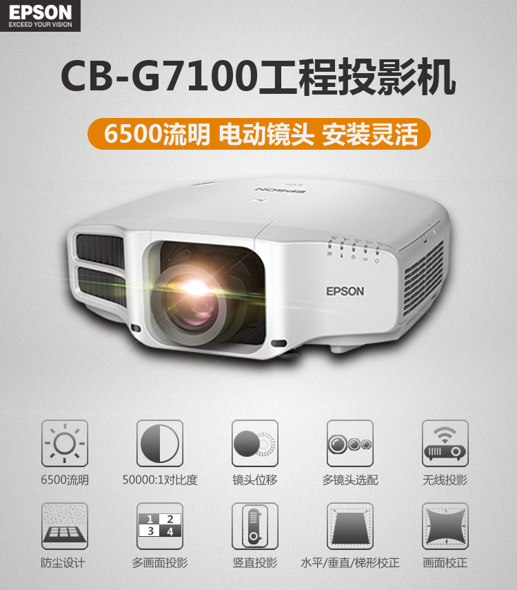 爱普生投影仪CB-G7100/G7800/G7000W/G7200W/G7400U/G7500U/G7900U高清中大型工程会议投影机