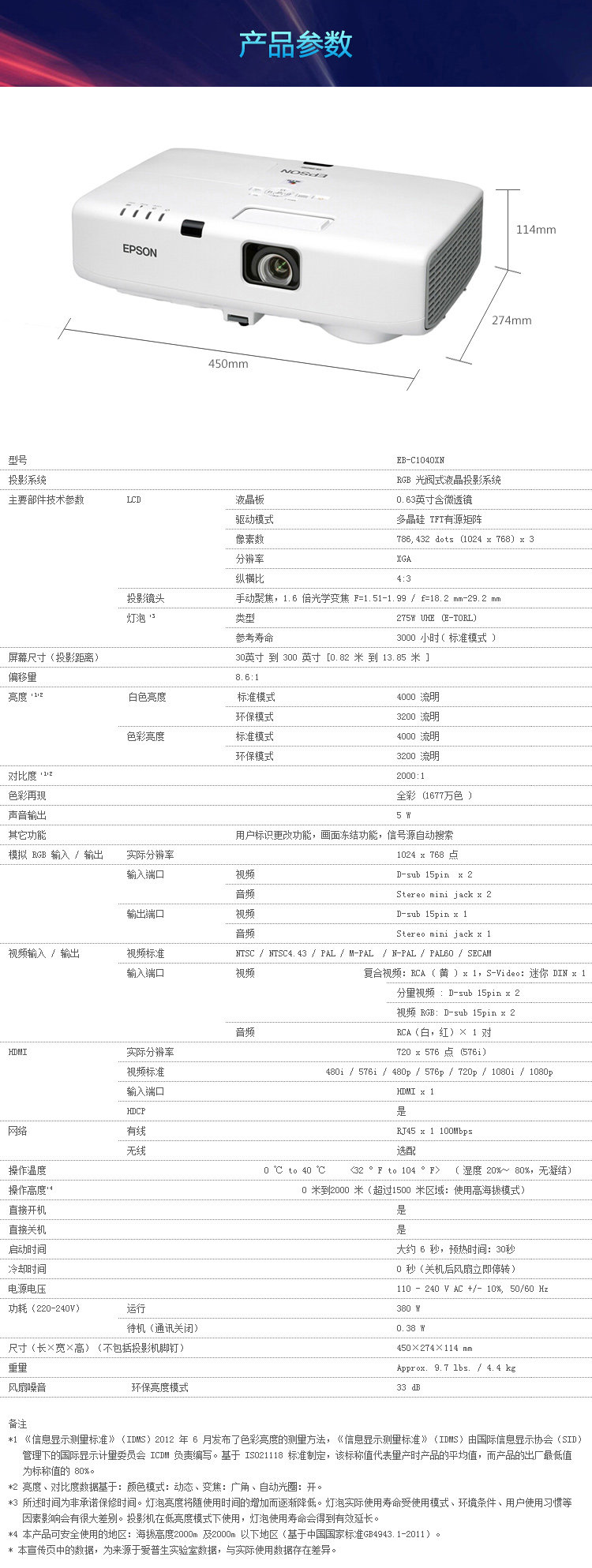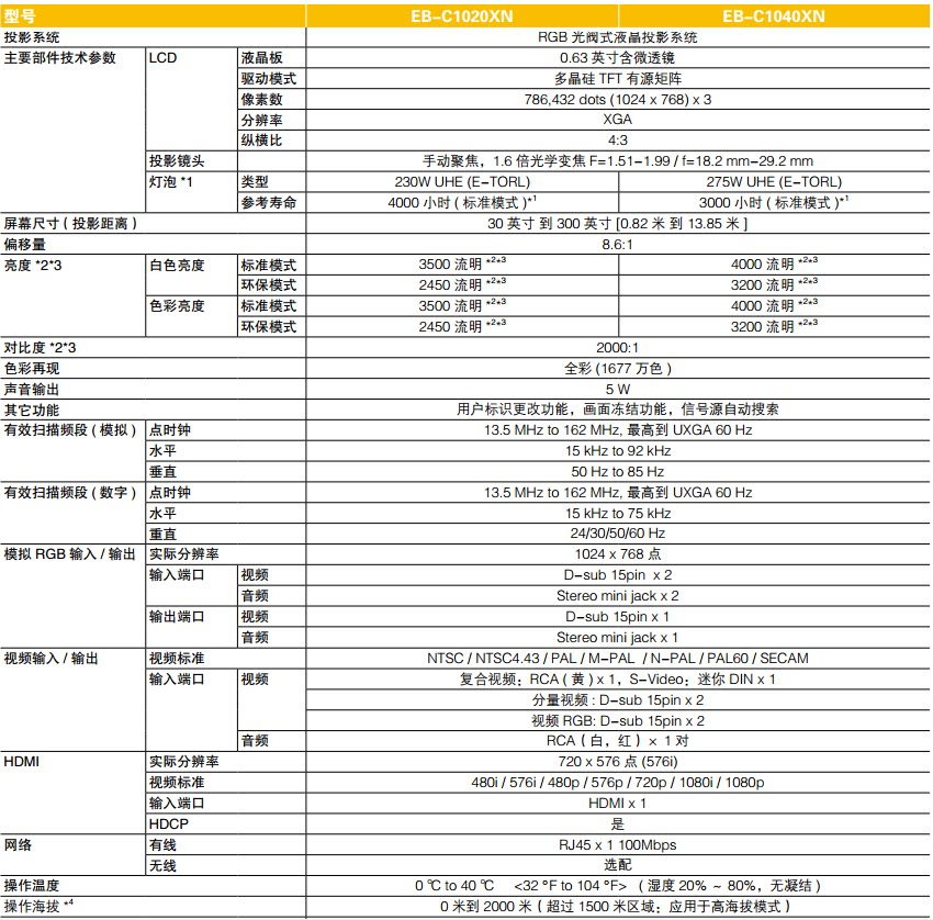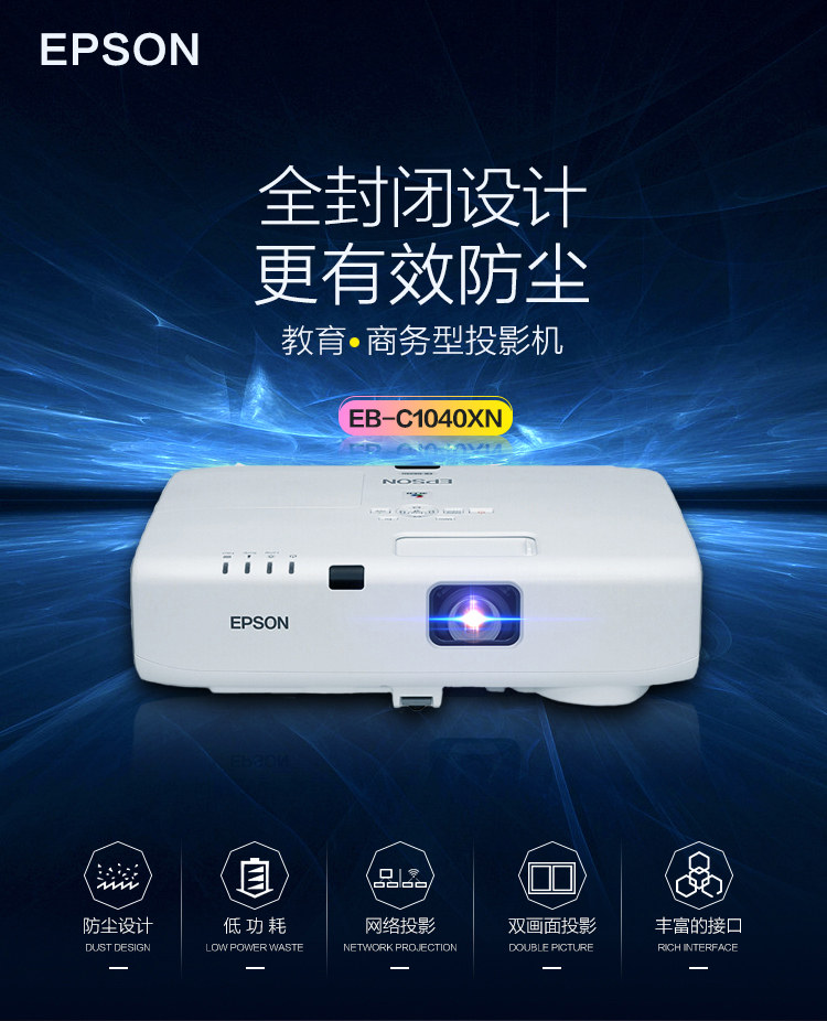 爱普生EB-C1040XN 多媒体液晶4000流明投影仪XGA分辨率教育防尘培训投影机价格可优