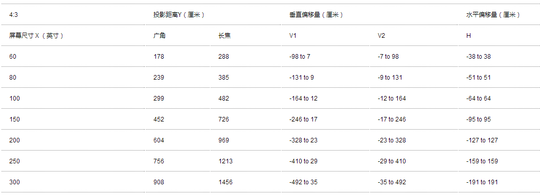 | 屏幕尺寸 ( 投影距离)(标准镜头) | 50-300英寸 [1.47m 到 9.08m] (变焦: 广角) 50-300英寸 [2.39m 到 14.56m] (变焦: 长焦) | |||