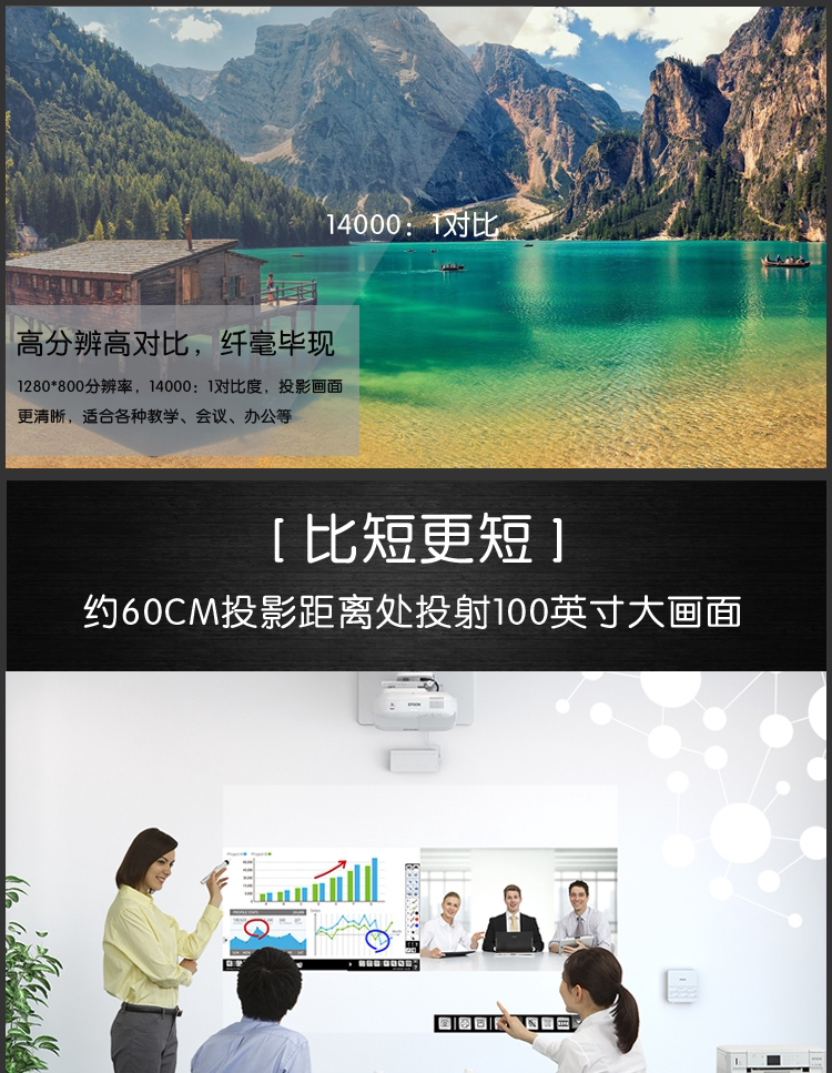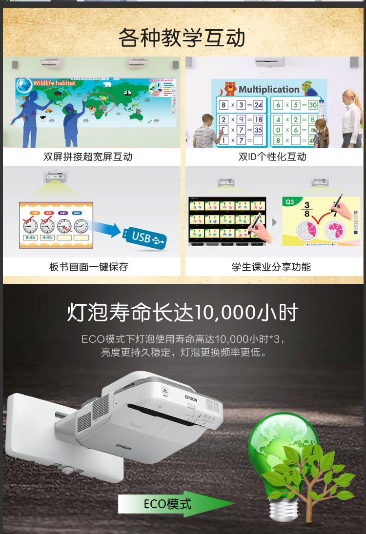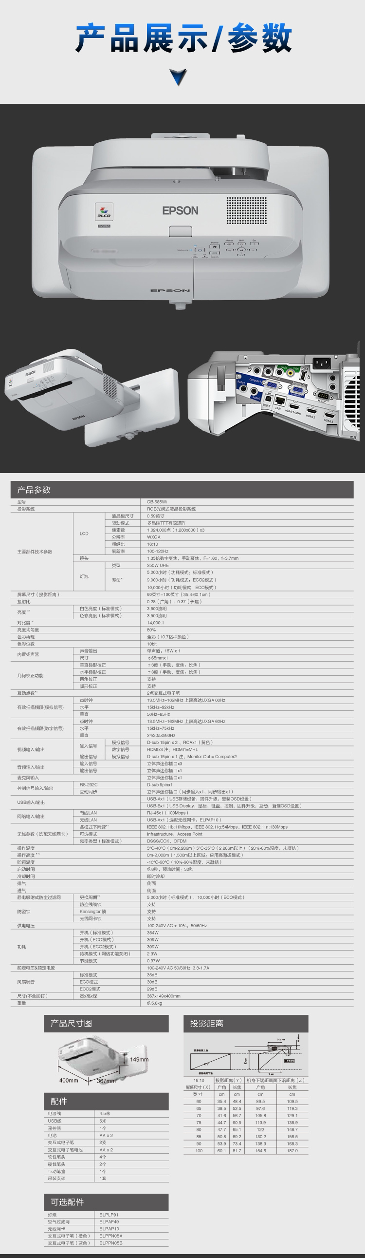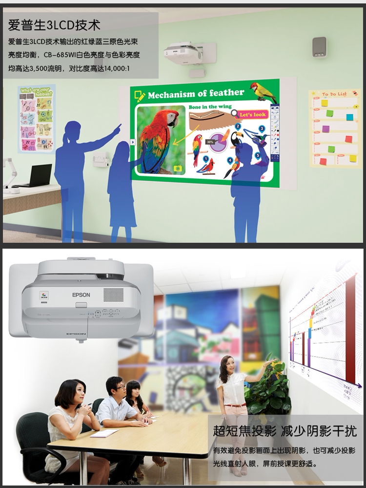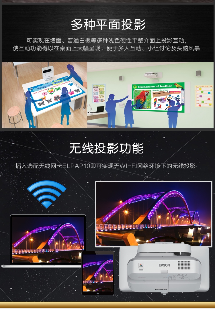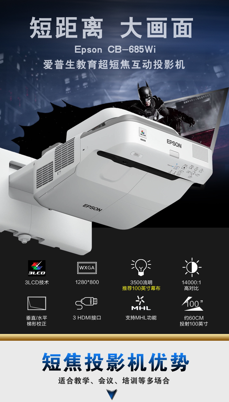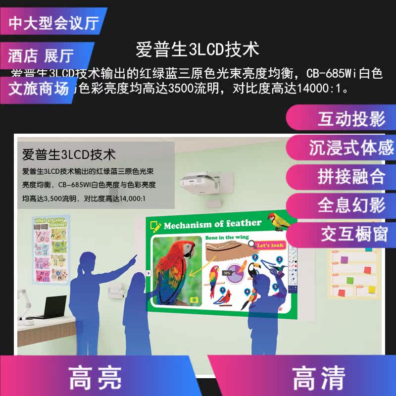 爱普生CB-685Wi 教育教学超短焦投影仪高亮无线培训反射式投影机3500流明价格可优