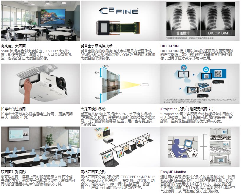 epson爱普生cb-x05办公投影机会议培训3300流明高清1080p白天直投家用小型便携家庭影院墙投手机wifi无线同屏