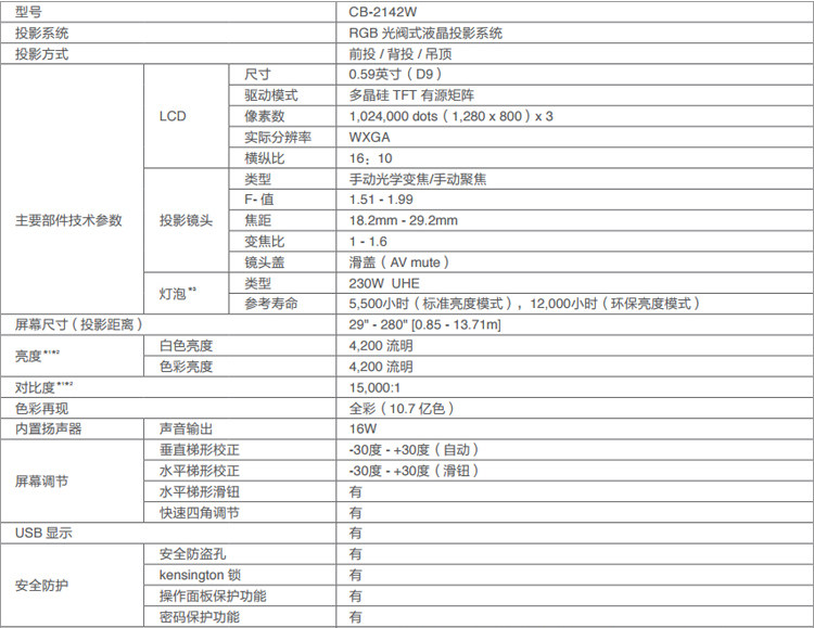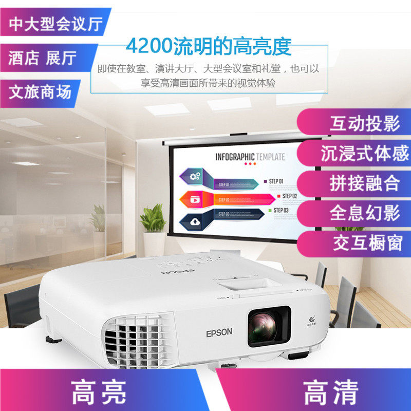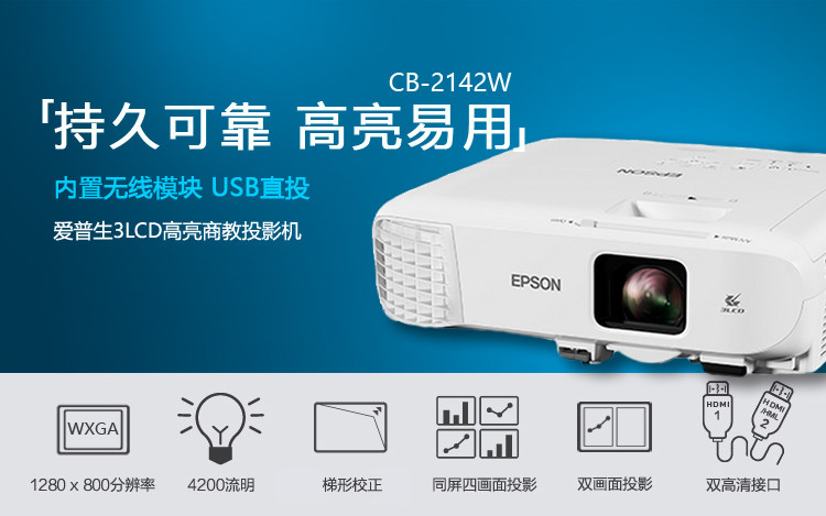 爱普生CB-2142W 商务会议室4200流明WXGA分辨率3LCD全能型投影机现货包邮价格可优