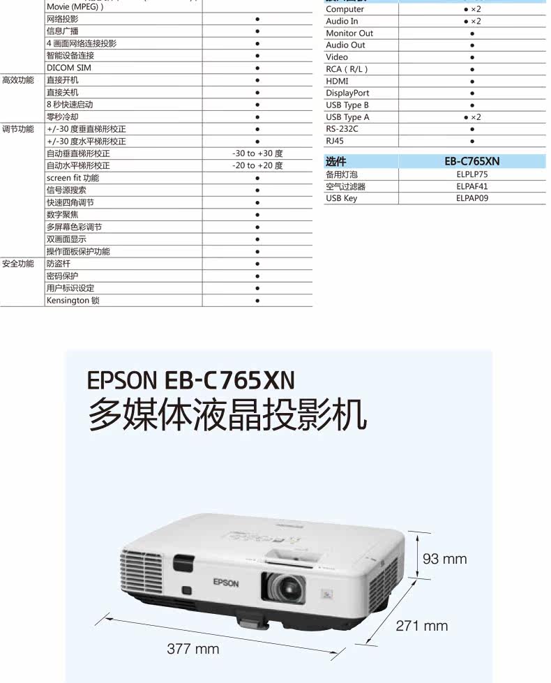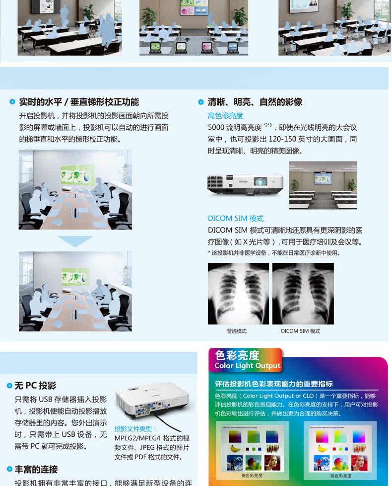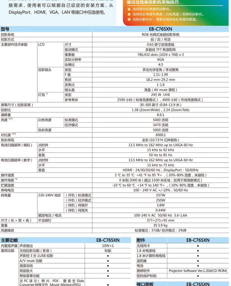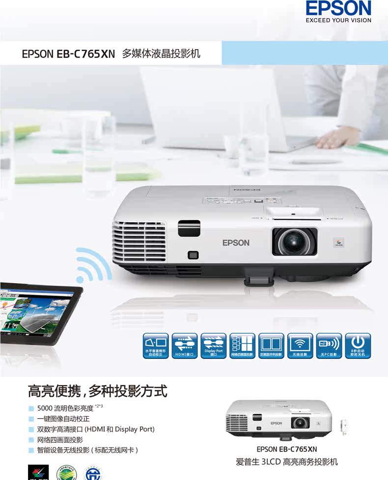爱普生CB-2065工程投影机新款高清无线投影仪5500流明原EB-C765XN中高端酒店培训会议餐厅会所投影仪