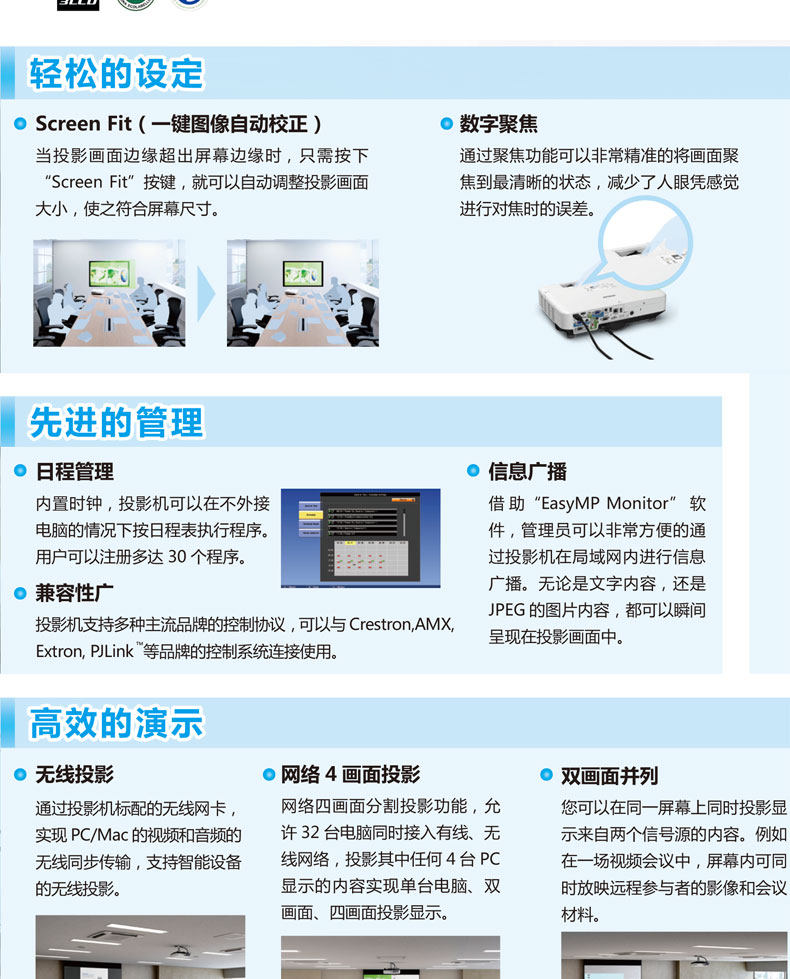 epson爱普生cb-x05办公投影机会议培训3300流明高清1080p白天直投家用小型便携家庭影院墙投手机wifi无线同屏