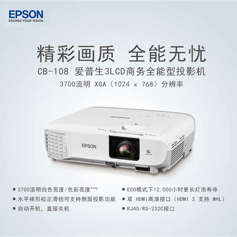 爱普生CB-108办公教学商用家用高清3700流明XGA 教学会议投影 双HDMI接口商务教育教学培训工程投影机