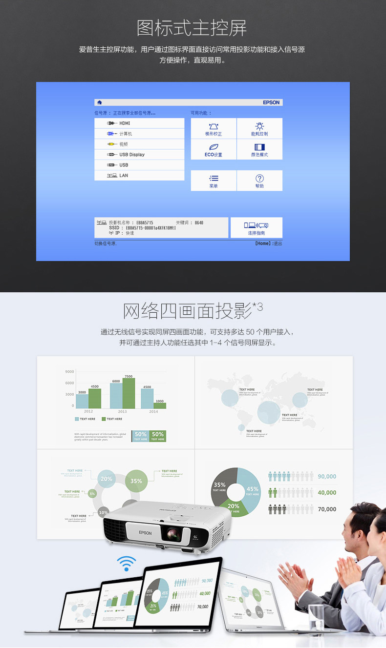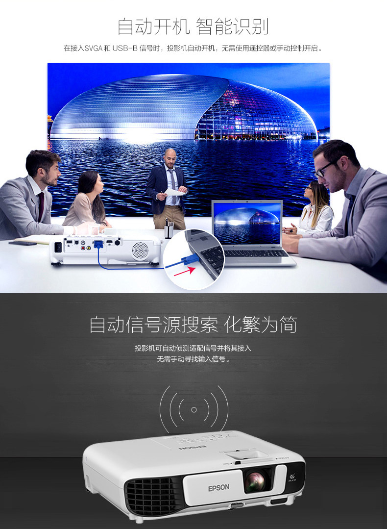 epson爱普生cb-x05办公投影机会议培训3300流明高清1080p白天直投家用小型便携家庭影院墙投手机wifi无线同屏