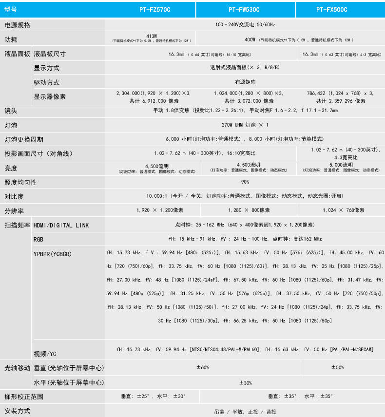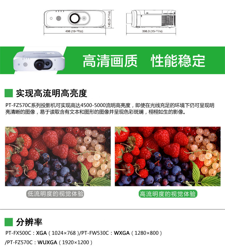 松下PT-FZ570C 商务办公投影机高性能商用工程投影仪舞台演出投影价格可优