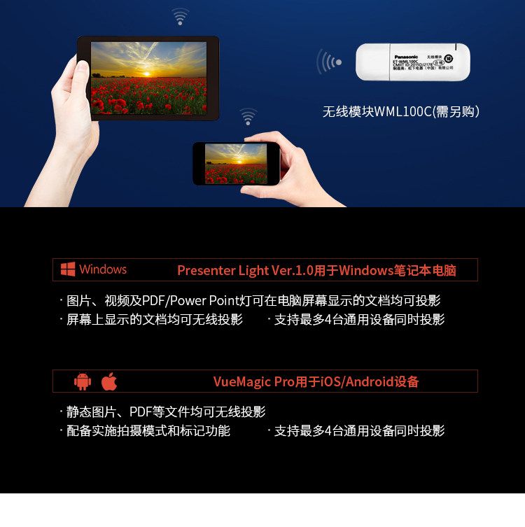 Panasonic松下PT-X329C投影仪办公用会议培训教育商用白天直投3100流明高清高亮手机无线投影机老款PT-UX335C