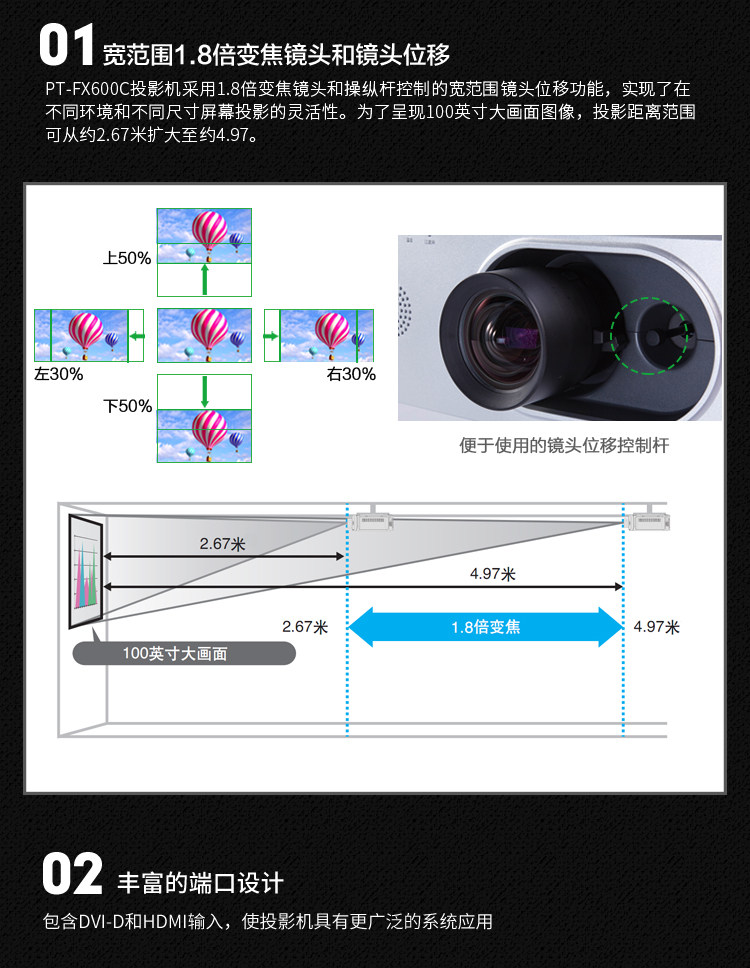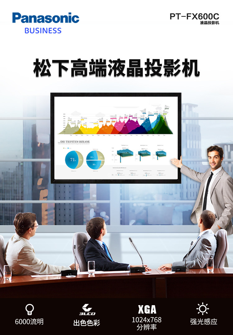 松下PT-FX600C商务标清办公投影仪6000流明XGA分辨率投影机