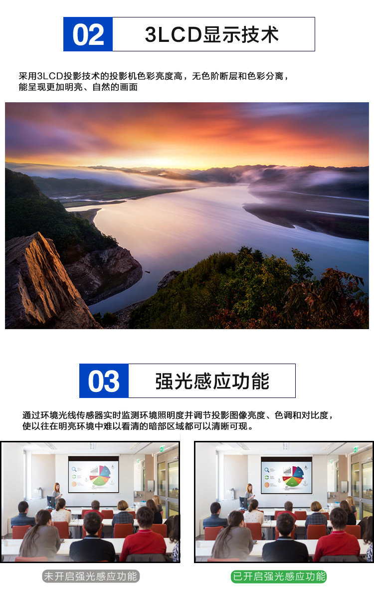 epson爱普生cb-x05办公投影机会议培训3300流明高清1080p白天直投家用小型便携家庭影院墙投手机wifi无线同屏
