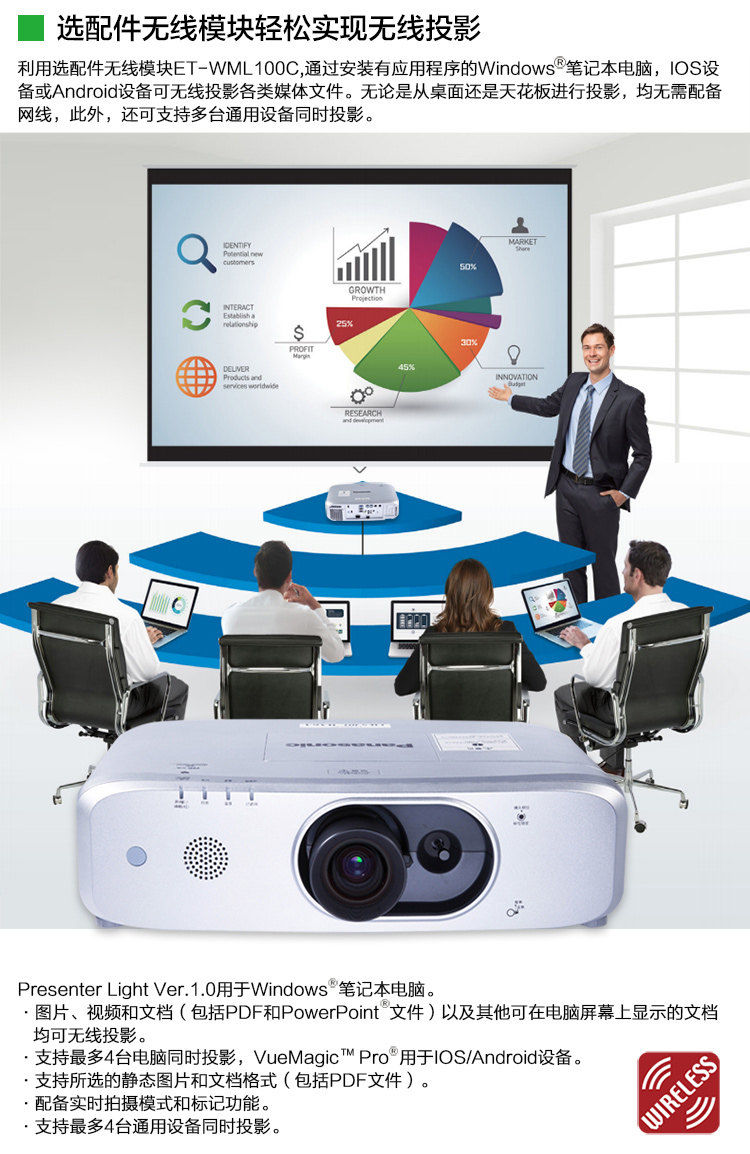 Panasonic松下PT-X329C投影仪办公用会议培训教育商用白天直投3100流明高清高亮手机无线投影机老款PT-UX335C