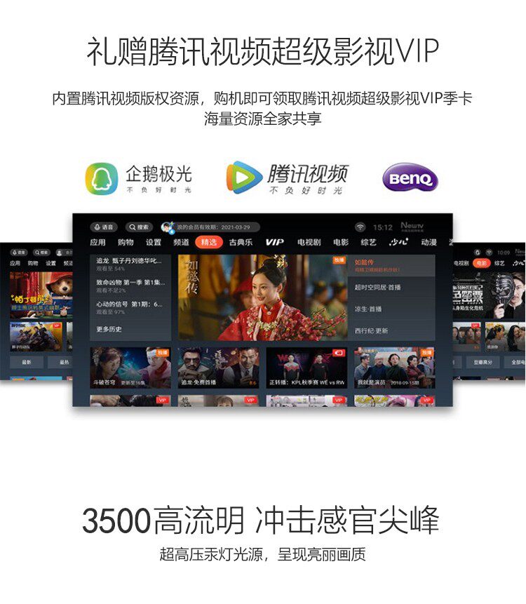 明基(BenQ)投影仪i706家用高清1080P蓝光3D投影机(智能无线 新品 语音功能) 官方标配
