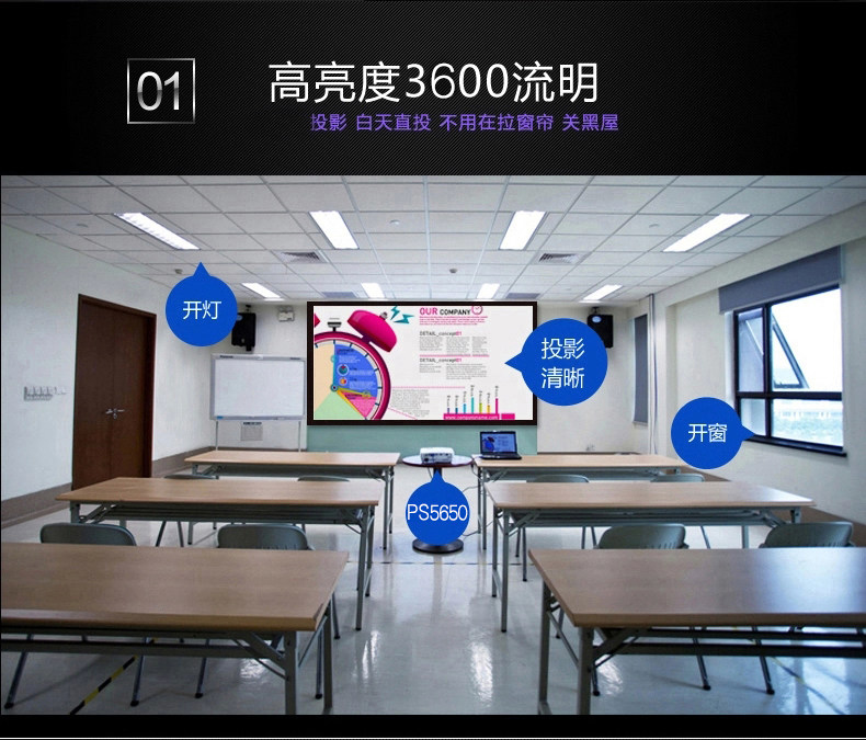 明基PS5650投影仪学校办公培训教育高清白天直投3000流明投影机