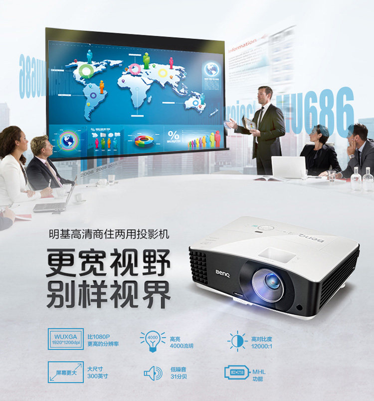 明基MU706投影仪家用 办公 高清1080P 蓝光3D 官方标配