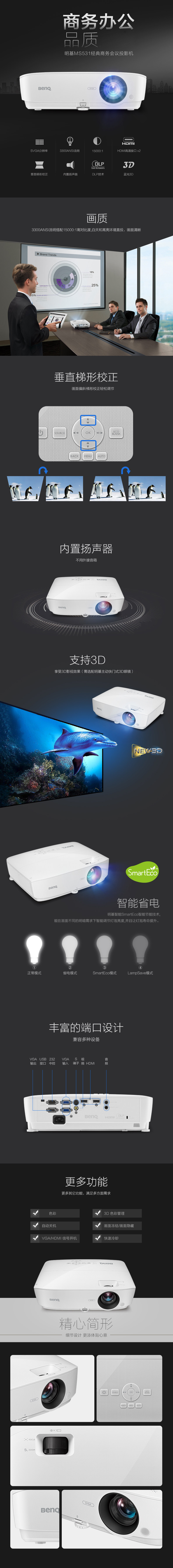 明基MS531投影仪商务会议 HDMI接口3D投影机(ms527升级型)