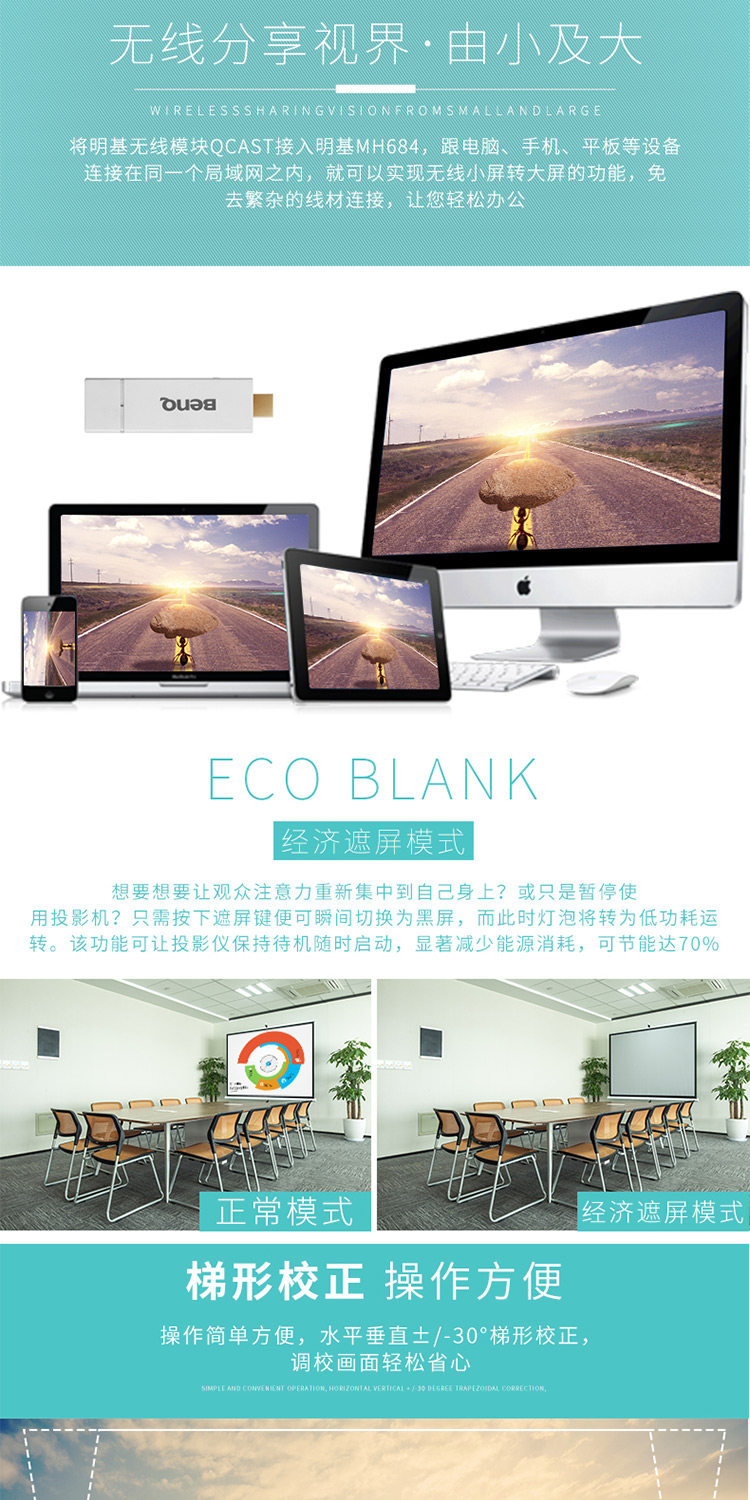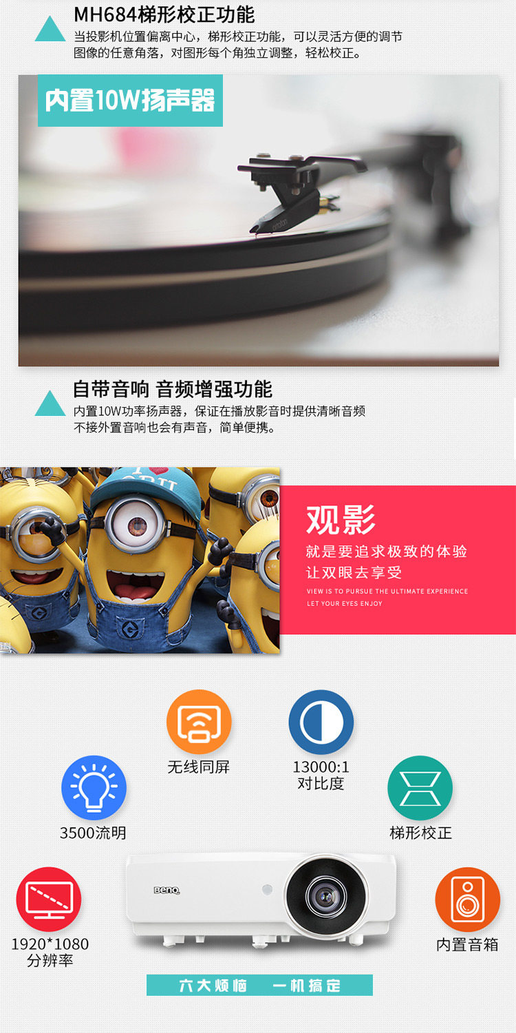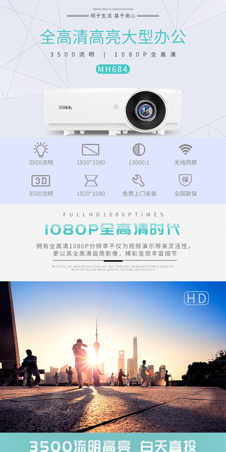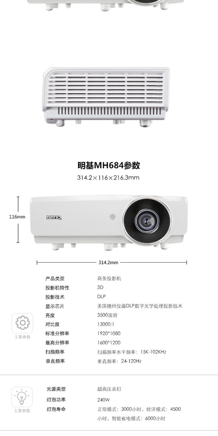 明基MH684投影仪高亮商务培训办公教学蓝光3D投影机高清1080p价格可优