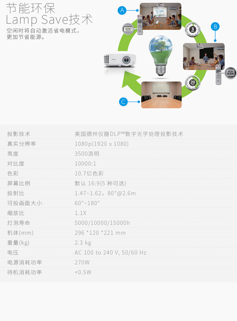 明基MS531投影仪商务会议 HDMI接口3D投影机(ms527升级型)