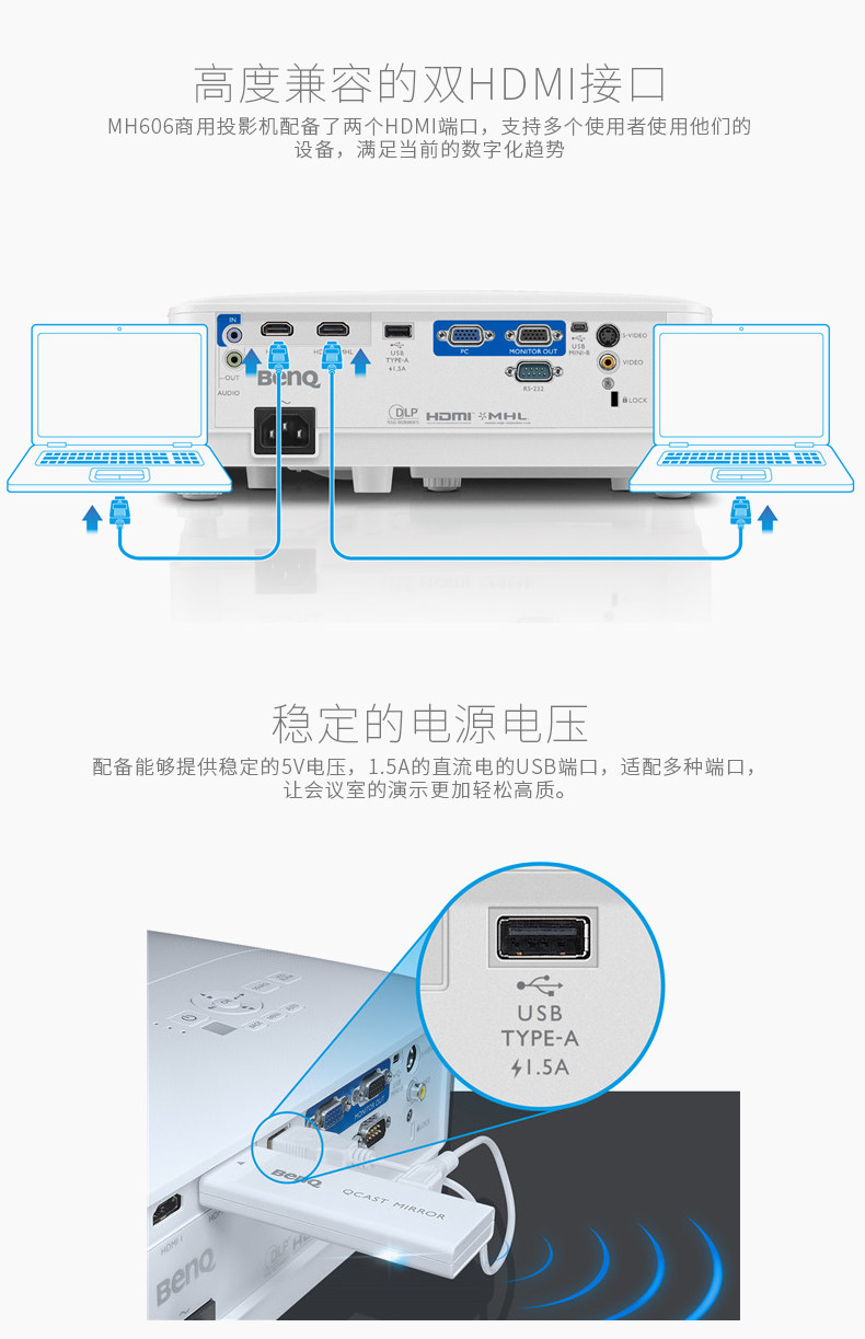 明基MH606投影仪3500流明家庭高清3D家庭影院1080P教学办公会议培训投影机白天直投无线手机智能投影仪