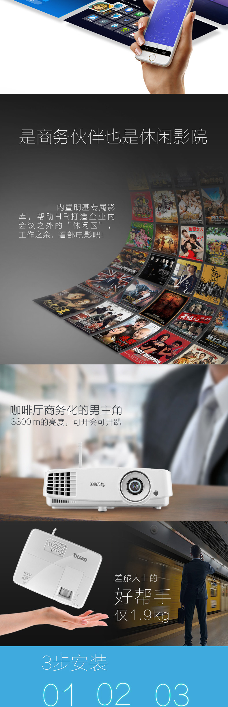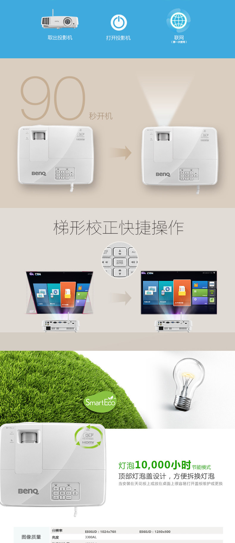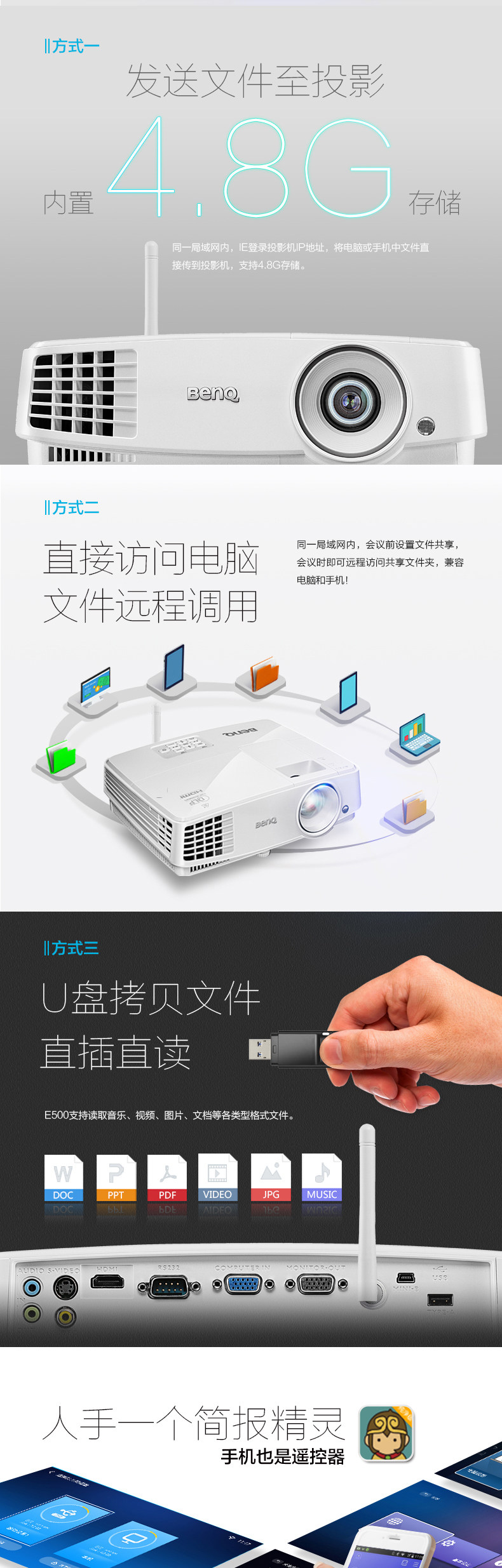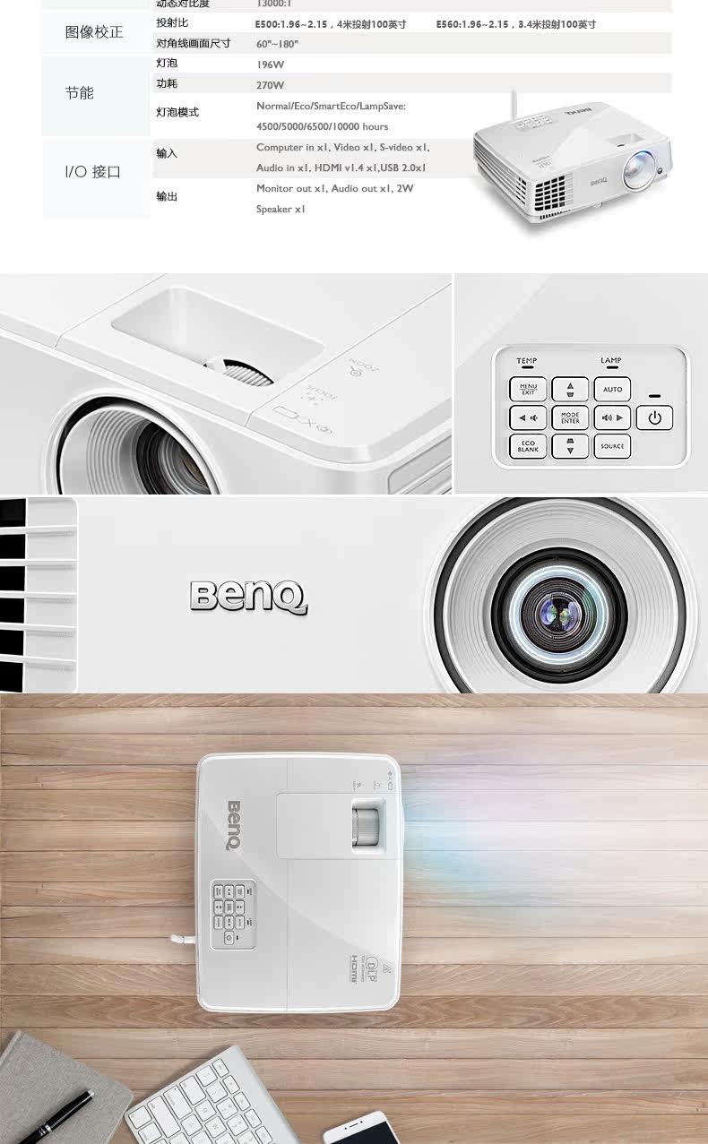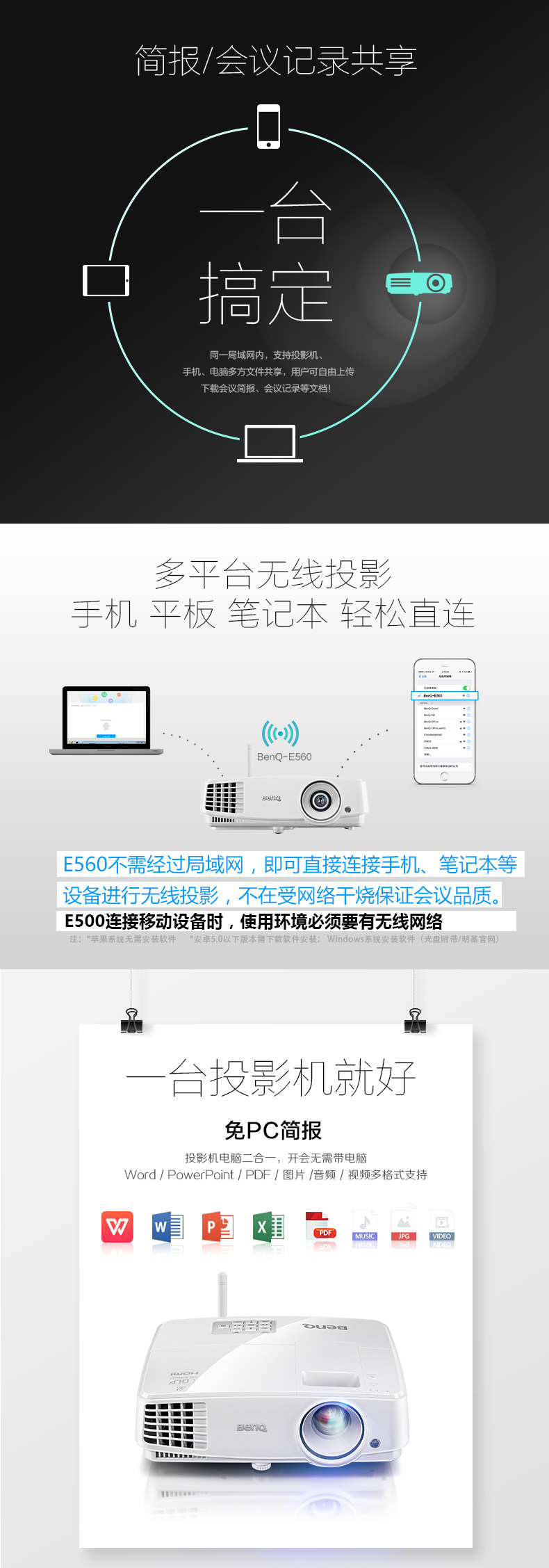 明基E560投影仪智能安装WIFI无线商务会议3D投影机