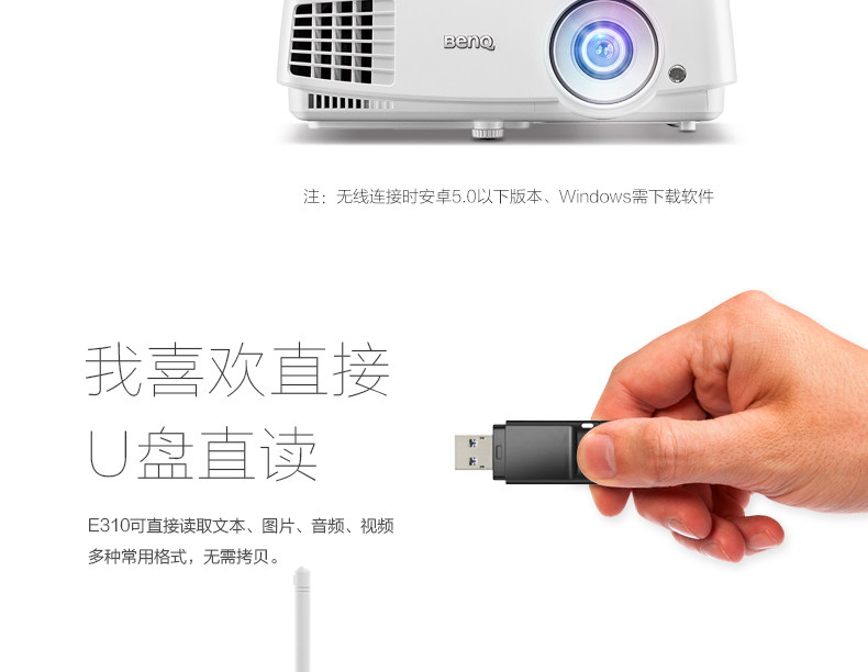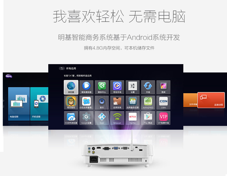 明基投影仪E580智能商务办公会议家用高清无线wifi蓝牙投影机
