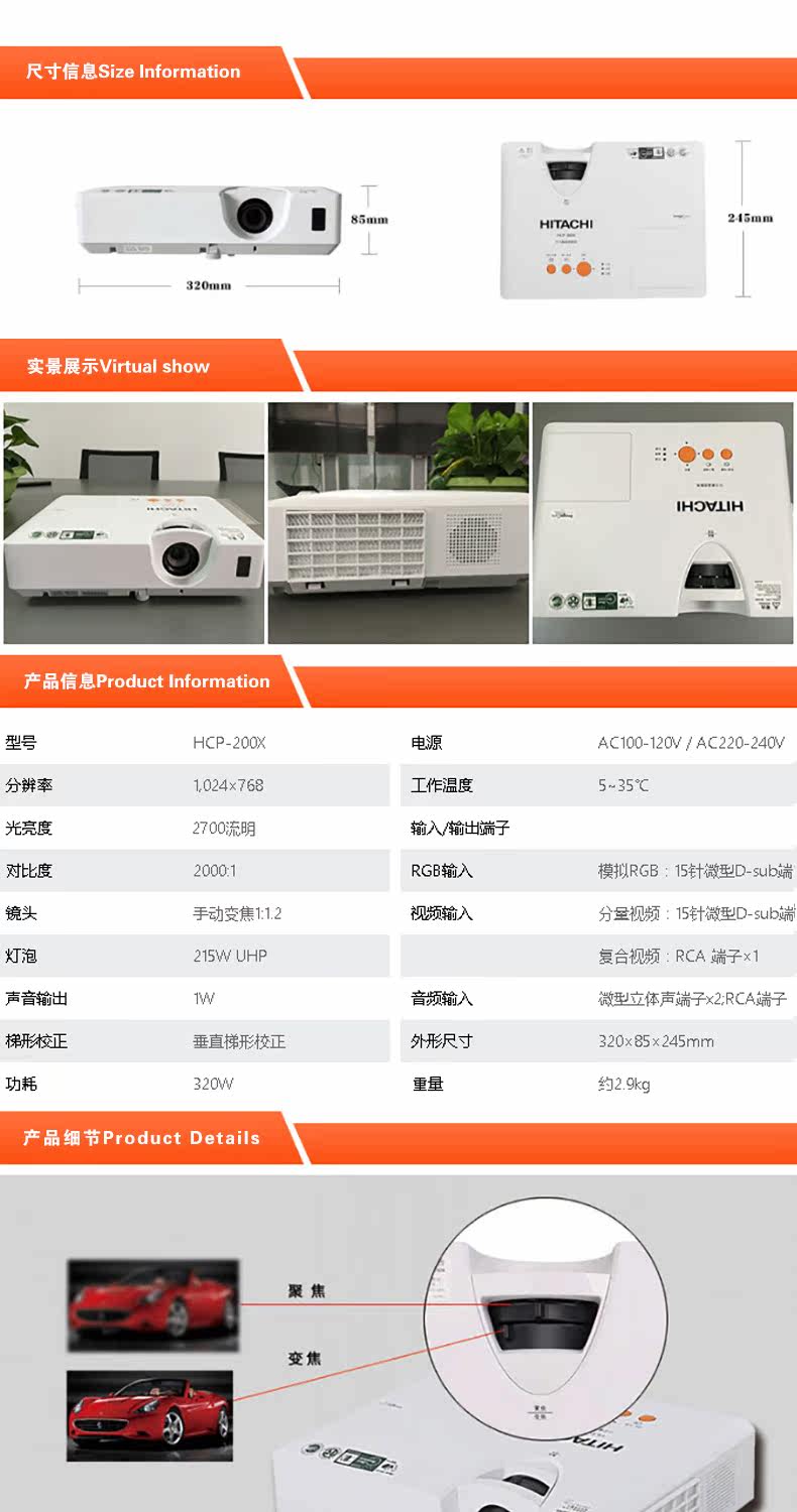 日立投影机HCP-200X 高清投影仪办公培训教育投影机会议高亮度价格可优
