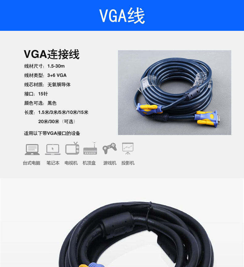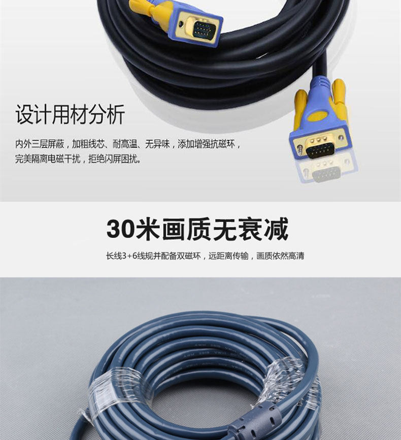 投影仪连接线 电脑投影信号线 高品质VGA线 高清无拖影图像传输线