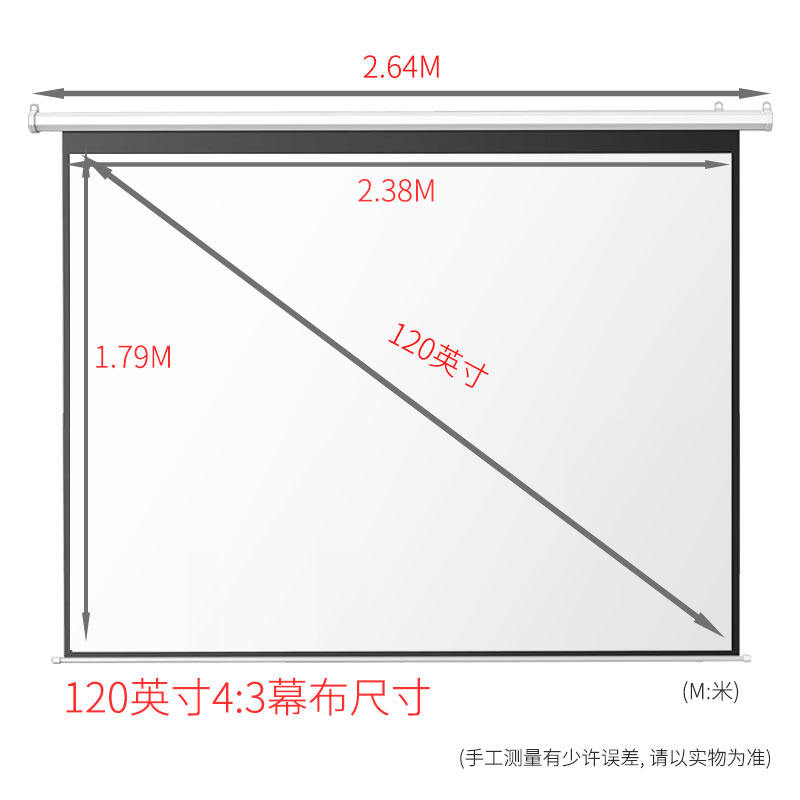 宏联120寸4:3会议室电动投影幕布 培训教室固定投影幕 玻珠高清高亮 壁挂遥控升降家用便携投影幕