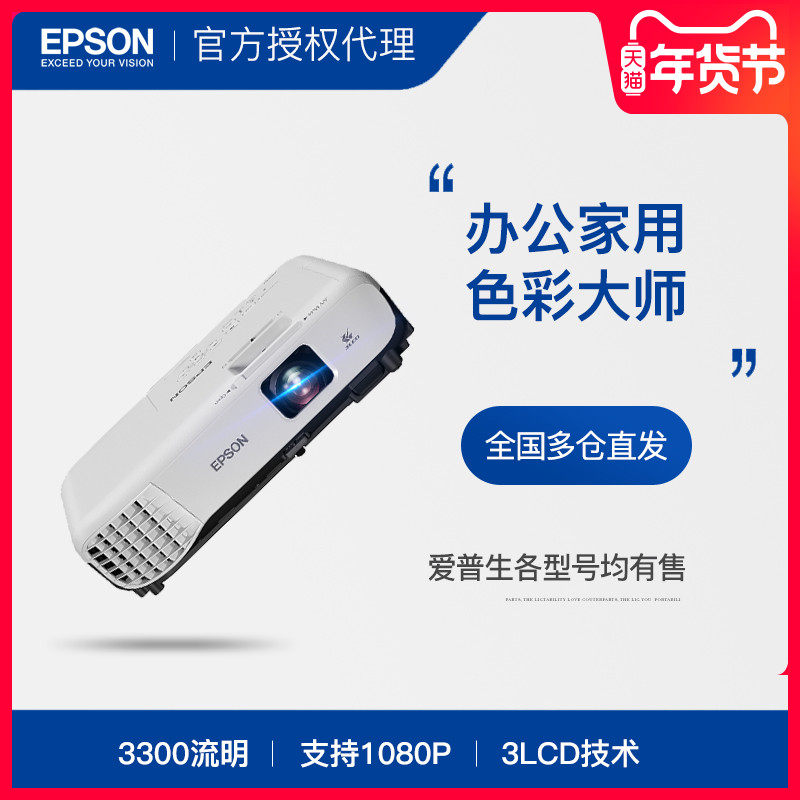 epson爱普生cb-x05办公投影机会议培训3300流明高清1080p白天直投家用小型便携家庭影院墙投手机wifi无线同屏