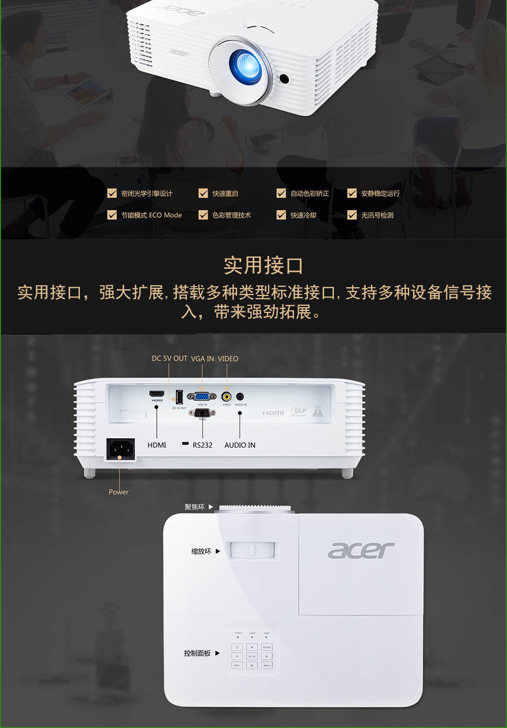 宏基V36X 商务办公会议3600流明投影机高亮蓝光3D商用家用投影机