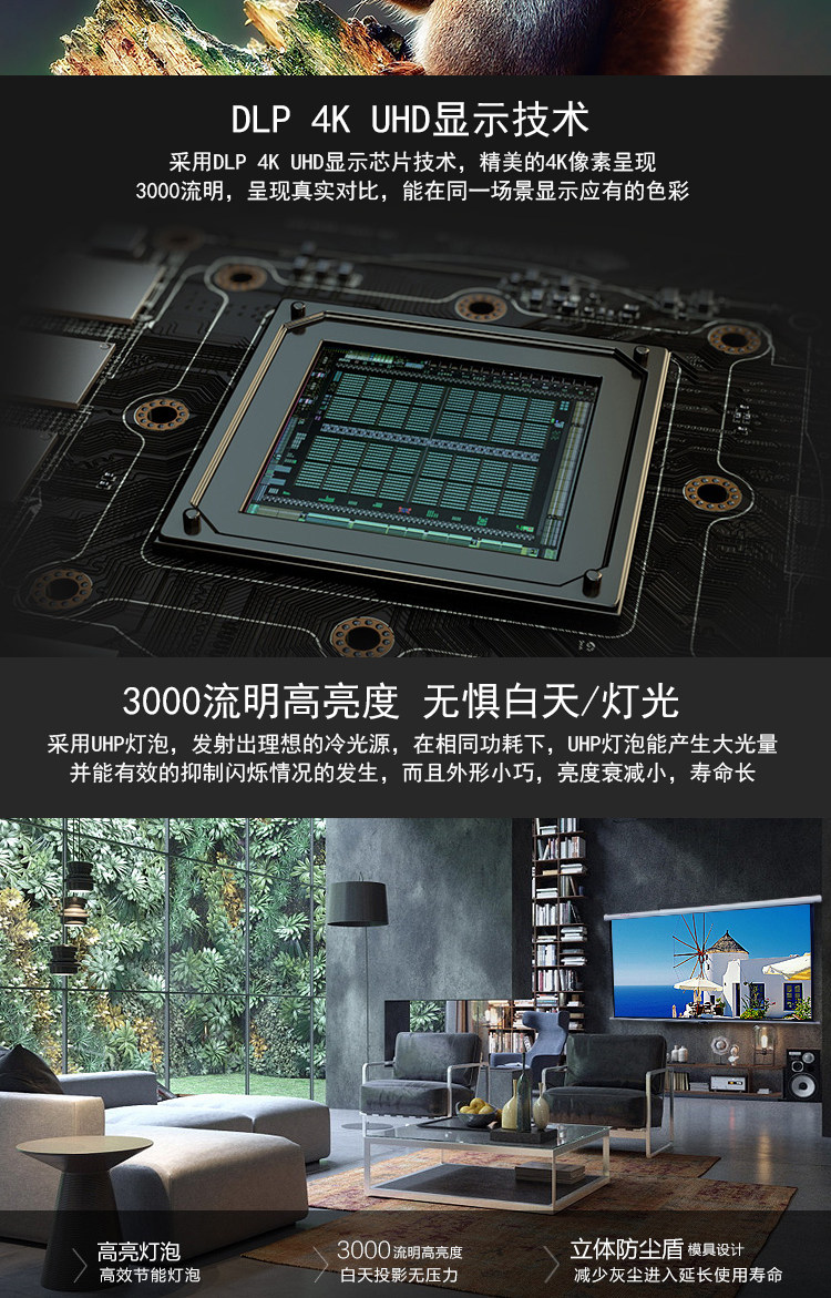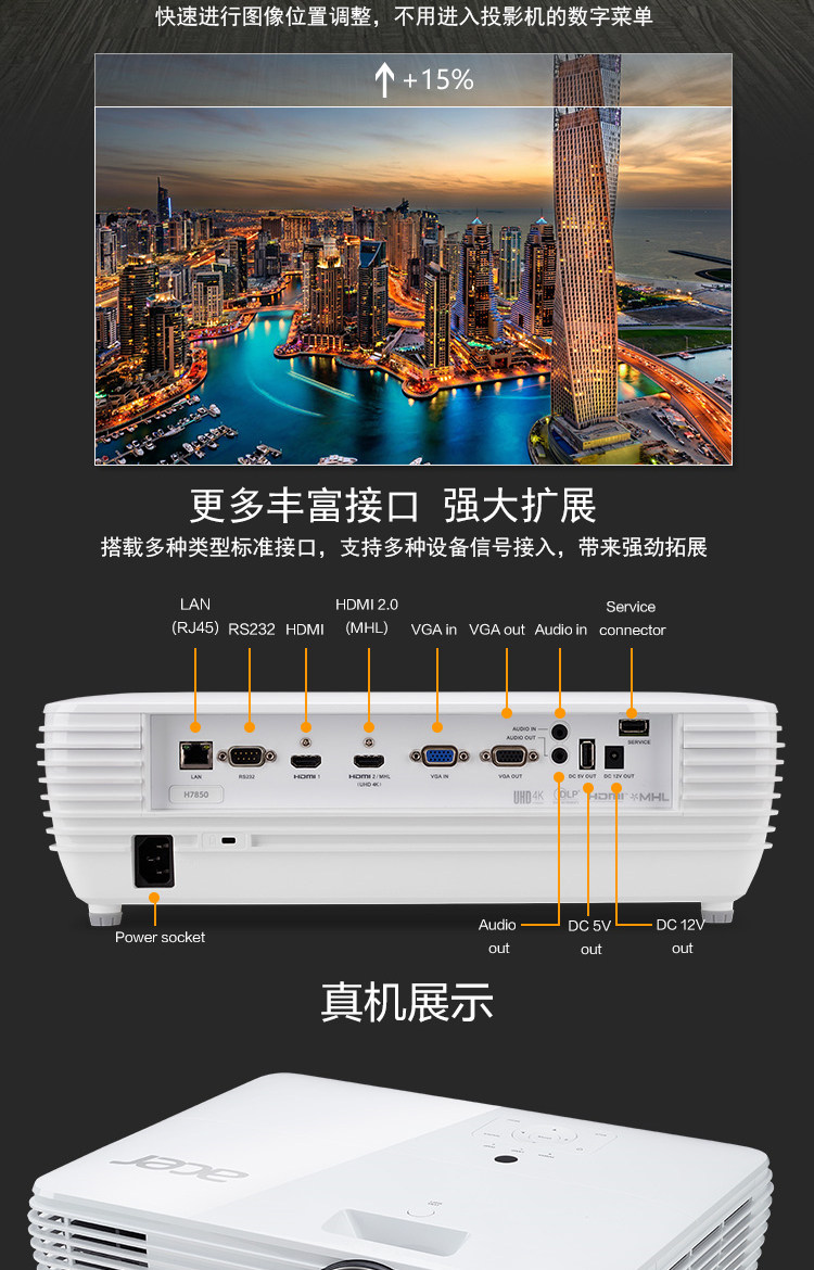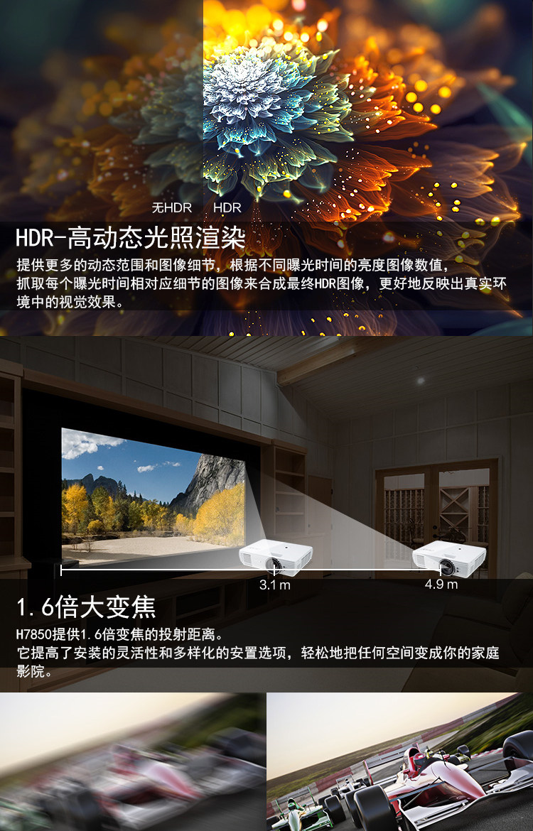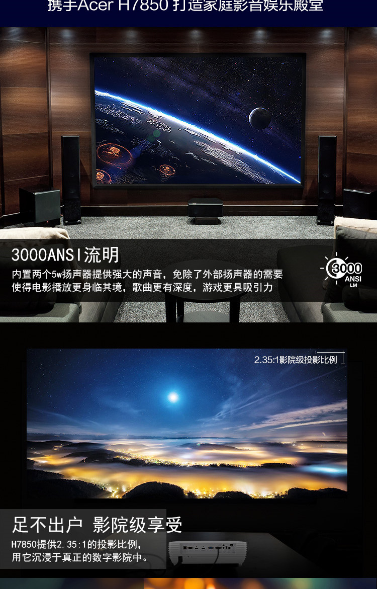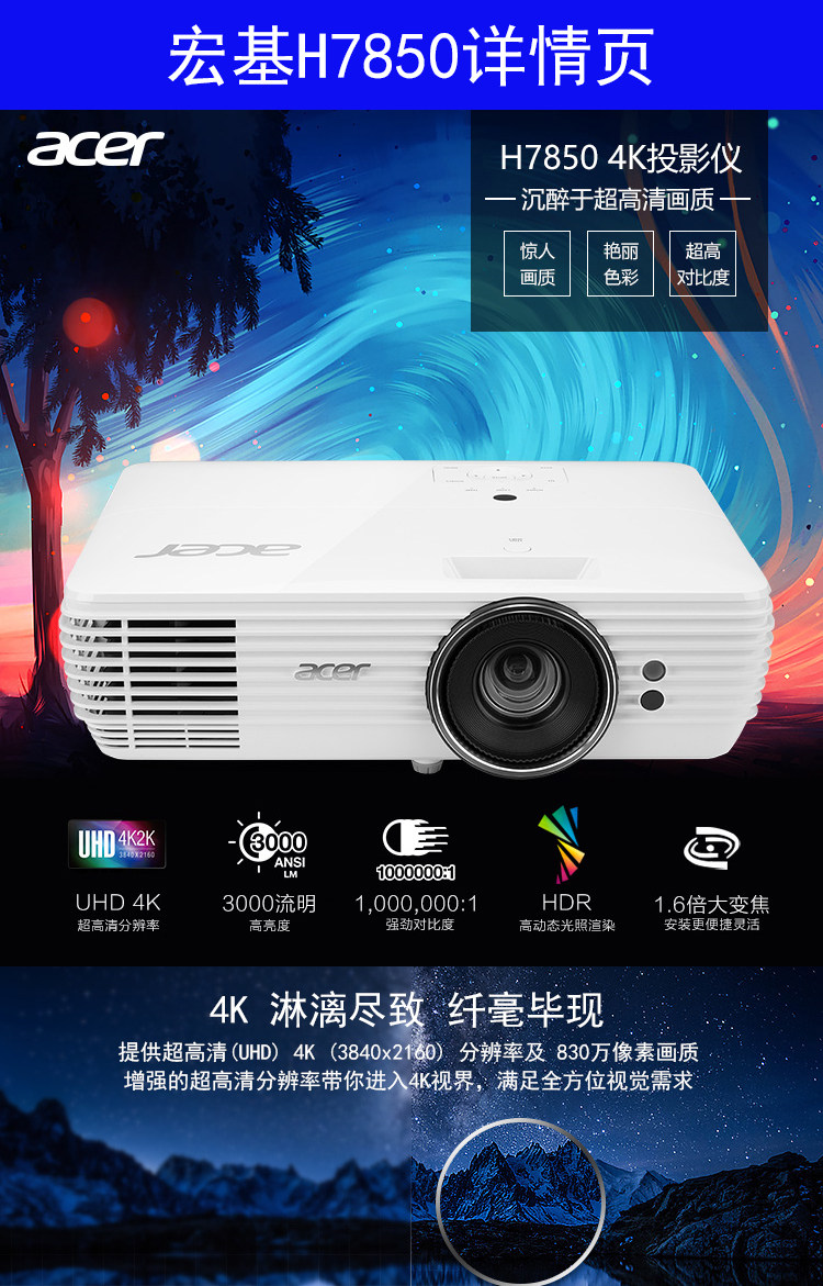 宏基H7850 新品4K专业家庭影院投影机别墅视听室大平层客厅影视厅豪华专业机超高清分辨率3840*2160