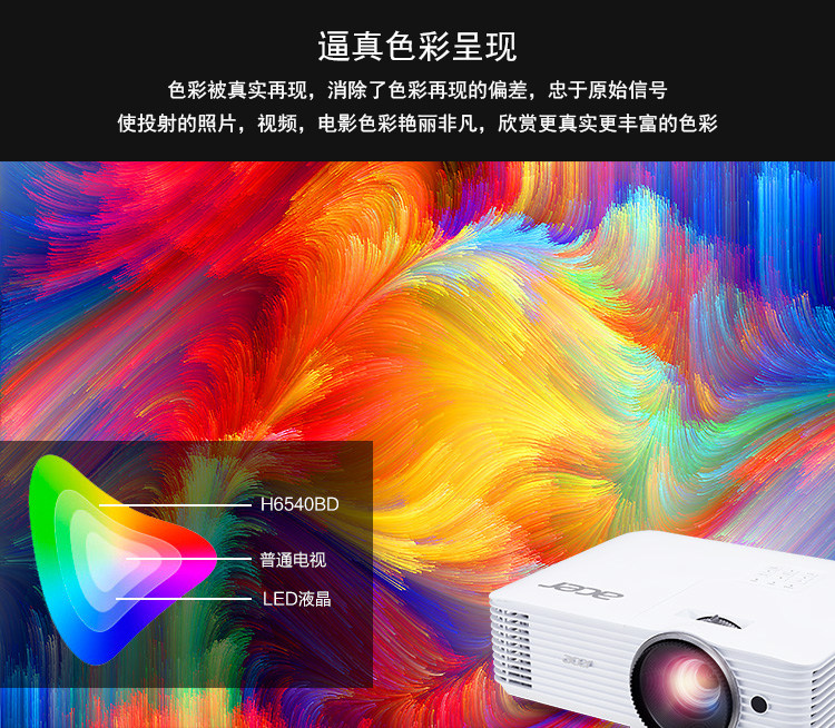 宏基H6540BD高清3D短焦无线投影仪1080P家用高清投影机 专业家庭影院投影机别墅视听室大平层客厅抗光投影