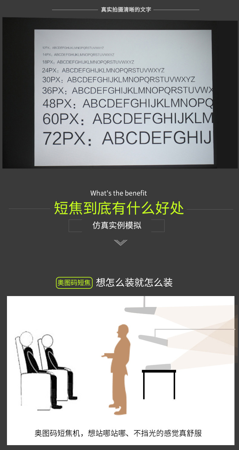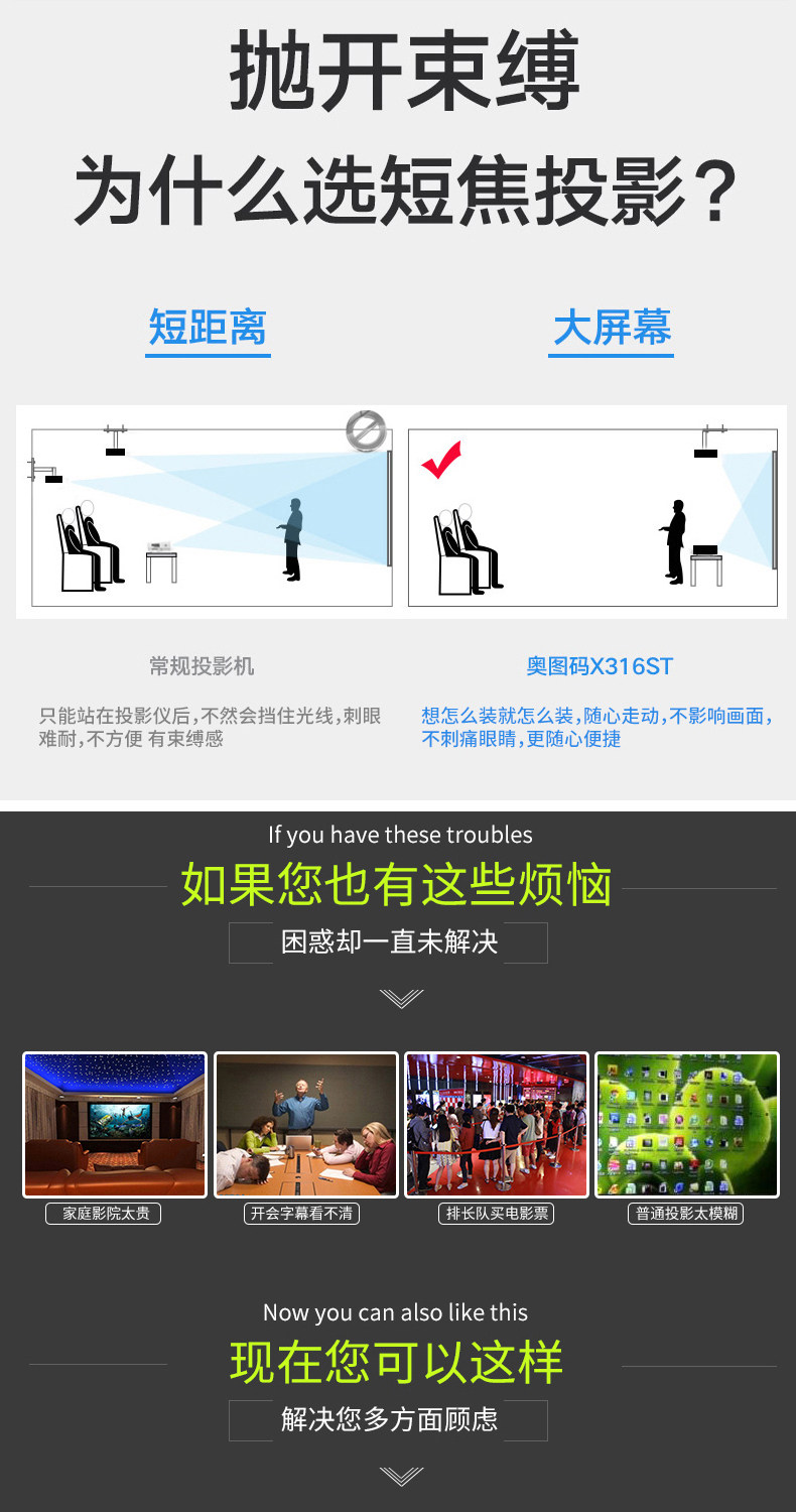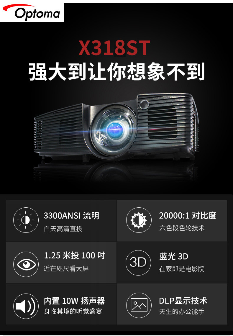 奥图码X318ST教学投影机 家用教室短焦距KTV商用投影仪1080P高清