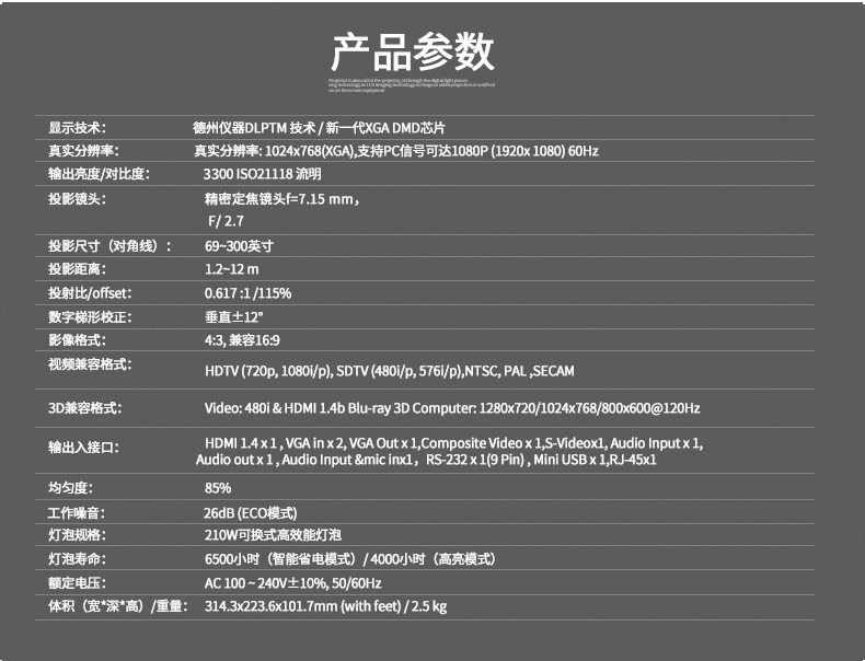 Panasonic松下PT-X329C投影仪办公用会议培训教育商用白天直投3100流明高清高亮手机无线投影机老款PT-UX335C