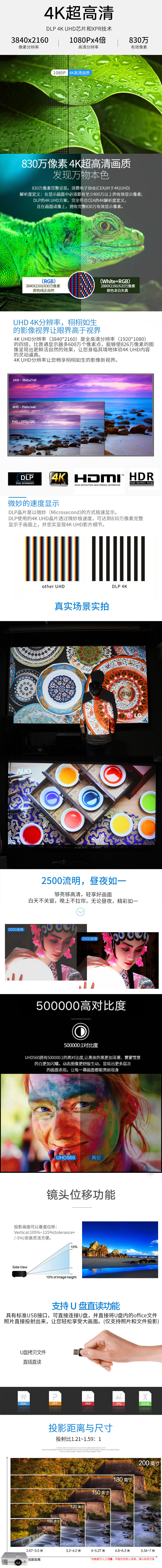 奥图码UHD560投影仪4K家用高清蓝光3D投影机HDR家庭影院 新款奥图码JEv9124