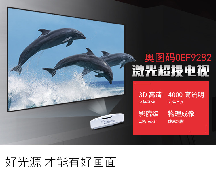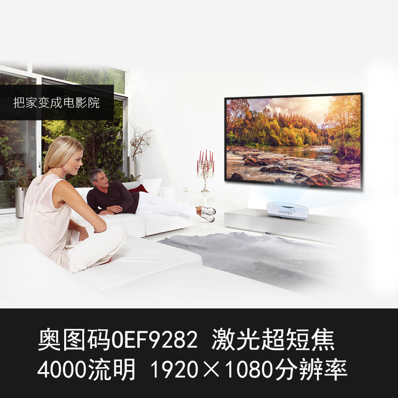 奥图码OEF9282 家用激光超短焦4000流明投影机1080P家庭影院投影机