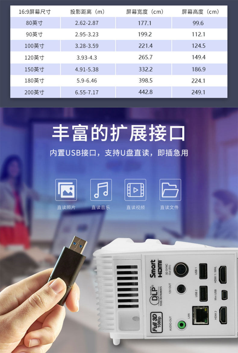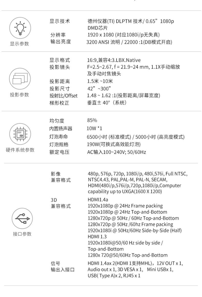 奥图码HD280S智能家庭影院投影仪无线WIFI直连1080P高清家用3D投影机手机直投